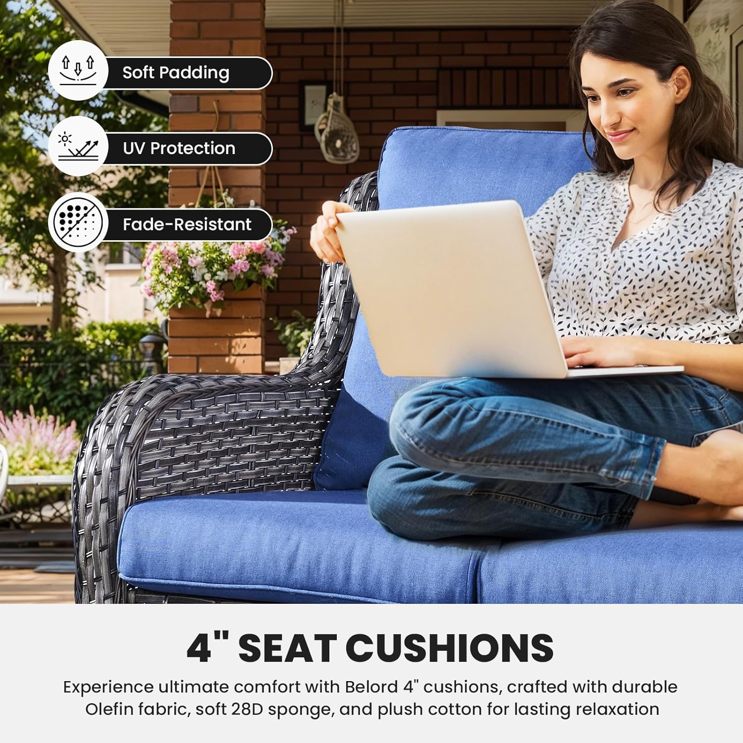 - 2.High Quality Cushions: The cushion cover with zipper is removable and washable with a special protective layer on top to provide exceptional water and sun protection for long-term use on outdoor patios, front porches, balconies, back gardens and decks.
