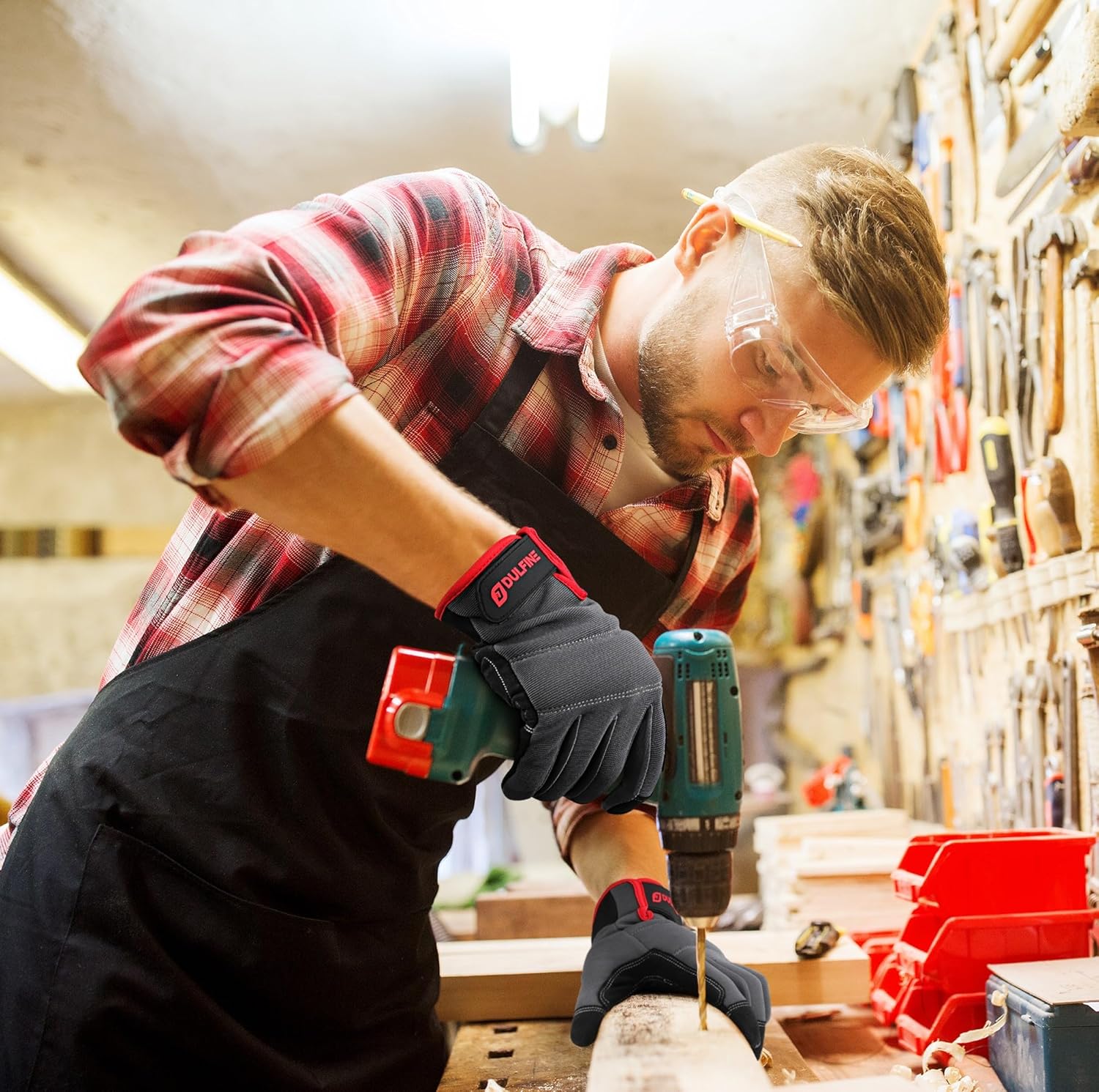 DULFINE Flex Grip Mechanic Work Gloves for Men,Black and Red Utility Safety Working Gloves Touch Screen,Excellent Grip,Ideal for Working on Cars and Outdoor Jobs(Large)
