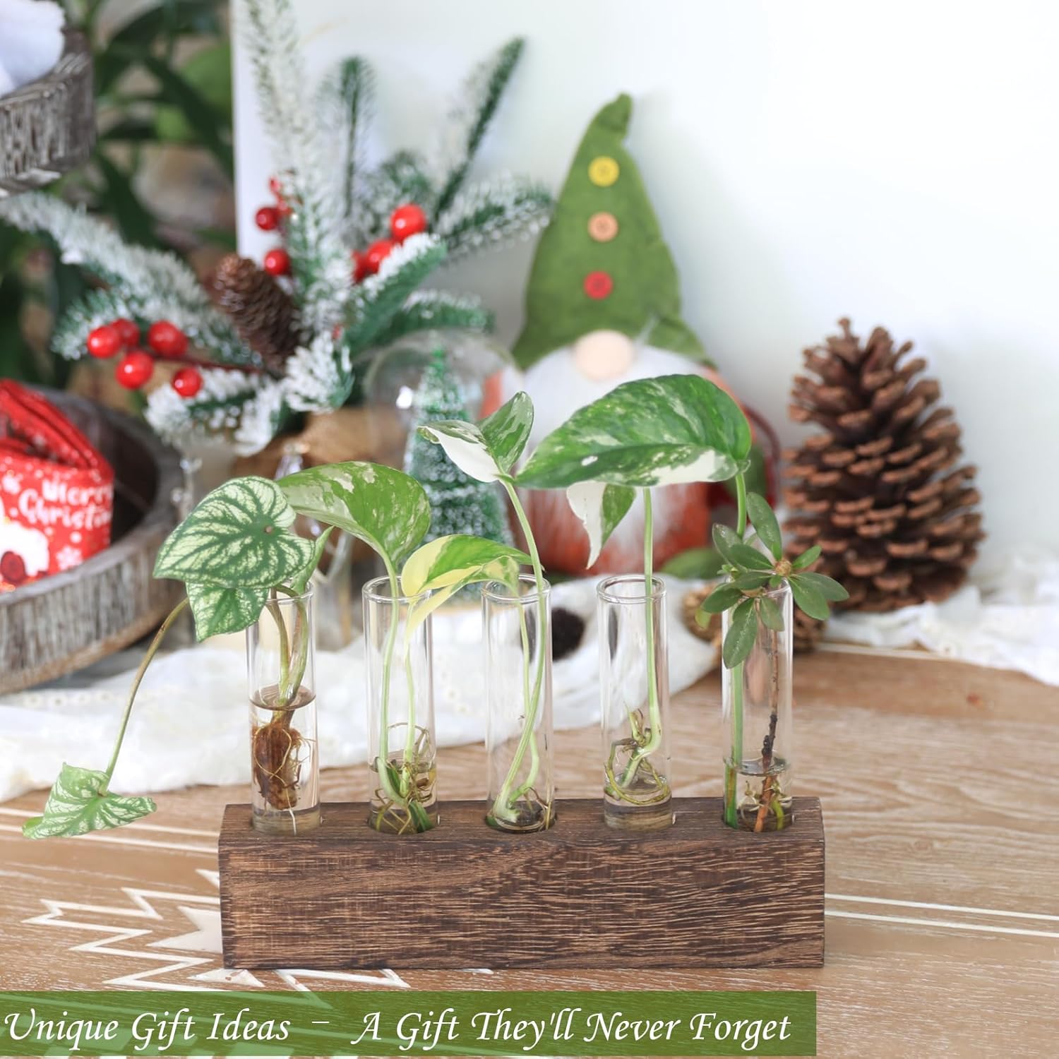 - ♥Package Includes: 1 wooden base, 6 test tubes, and 1 cleaning brush. The thick packaging ensures effective protection against damage during transit. To start your plants, simply fill the test tubes with water, add your favorite plant cuttings, and enjoy watching the roots develop over time.