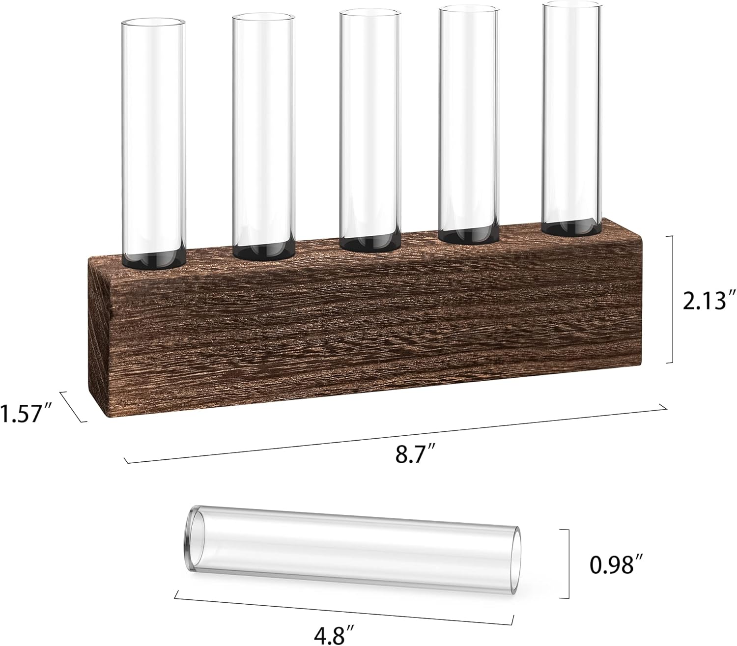 - ♥Test Tube Plant Terrarium Size: Propagation station wooden base (8.58" L x 1.37" W x 1.96" H) and five(5) glass test tubes (1" D x 4.7" H). Ideal for various plant cuttings, water plants, baby cuttings, clippings, fern, flowers. Test tube propagation stations is a perfect gift for gardeners and plant lovers. Display propagation vase on windowsills, desktops, shelves, or bedside tables to elevate your living room, dining room, kitchen, cafe, or office decor.