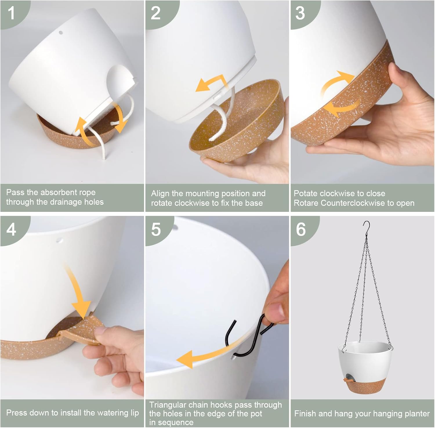 • High Quality - Super load-bearing triangulated chain with three rust-resistant chain and hook, strong, durable and increased stability of hanging plant holder. The hanging planters's thick sidewalls are made of high-quality plastic, size: 8" D x 6.8" H. With a vertical hanging design, it conveniently saves space.