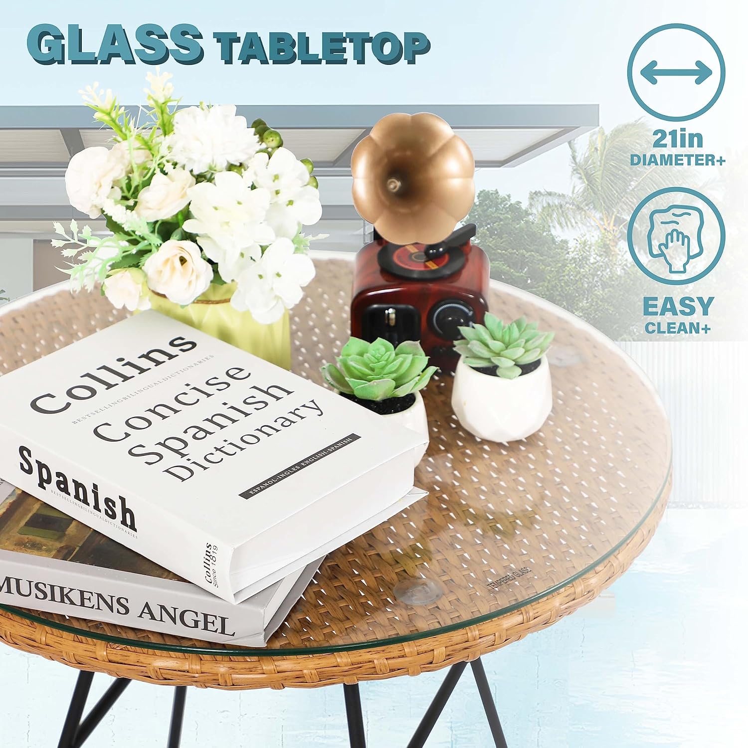 - STURDY & DURABLE: These balcony furniture is constructed with sturdy frame, which provides durable and bearing ability. The wicker patio chairs covered with high strength PE wicker, which can withstand changes in weather. Thickened water resistant durable cushions and tempered glass are easy to clean.