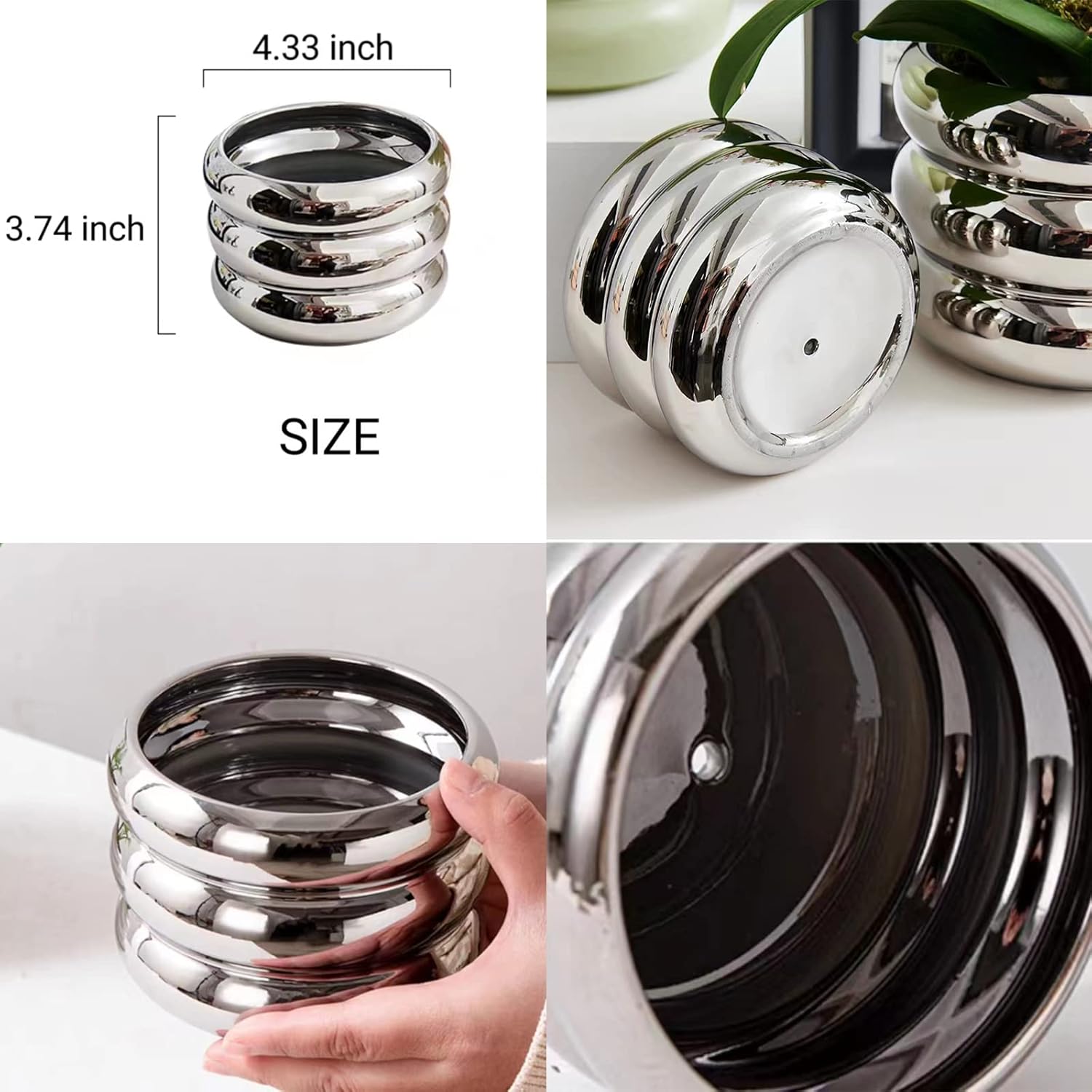 Ceramic Plant Pot Indoor, 4.7 Inch Flower Pot with Drainage Hole, Small Bubble Design Ceramic Planter for Home & Office Decor (Silver)