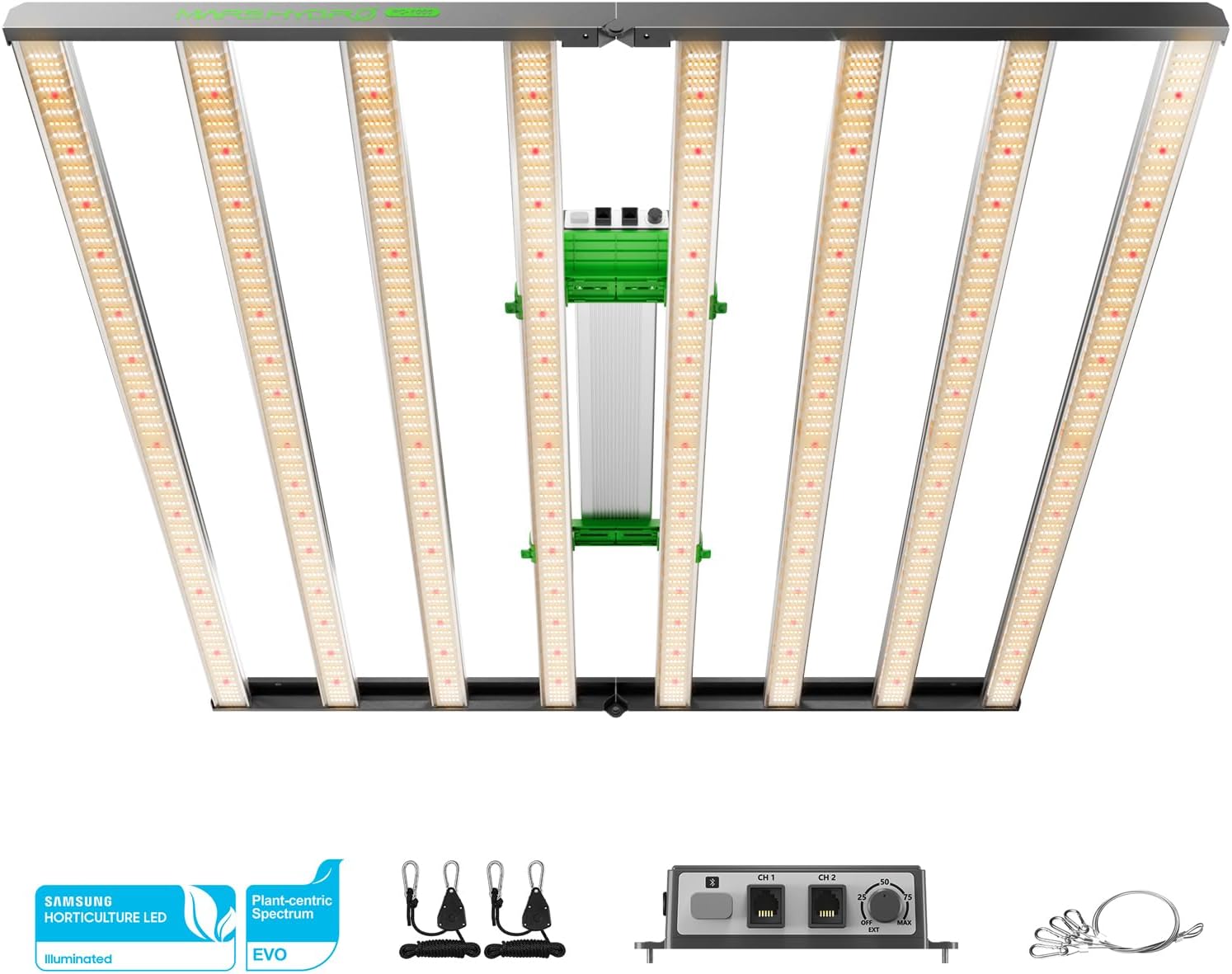 - OUTSTANDING EFFICIENCY: Packed with cutting-edge Samsung LM301H EVO diode, delivering a remarkable 3.14 μmol/j per diode and provides an overall PPE of 2.9 μmol/j, a PPFD of up to 3029 μmol/m²/s, it is well-suited for both personal growers and commercial cultivation facilities (especially vertical farming).