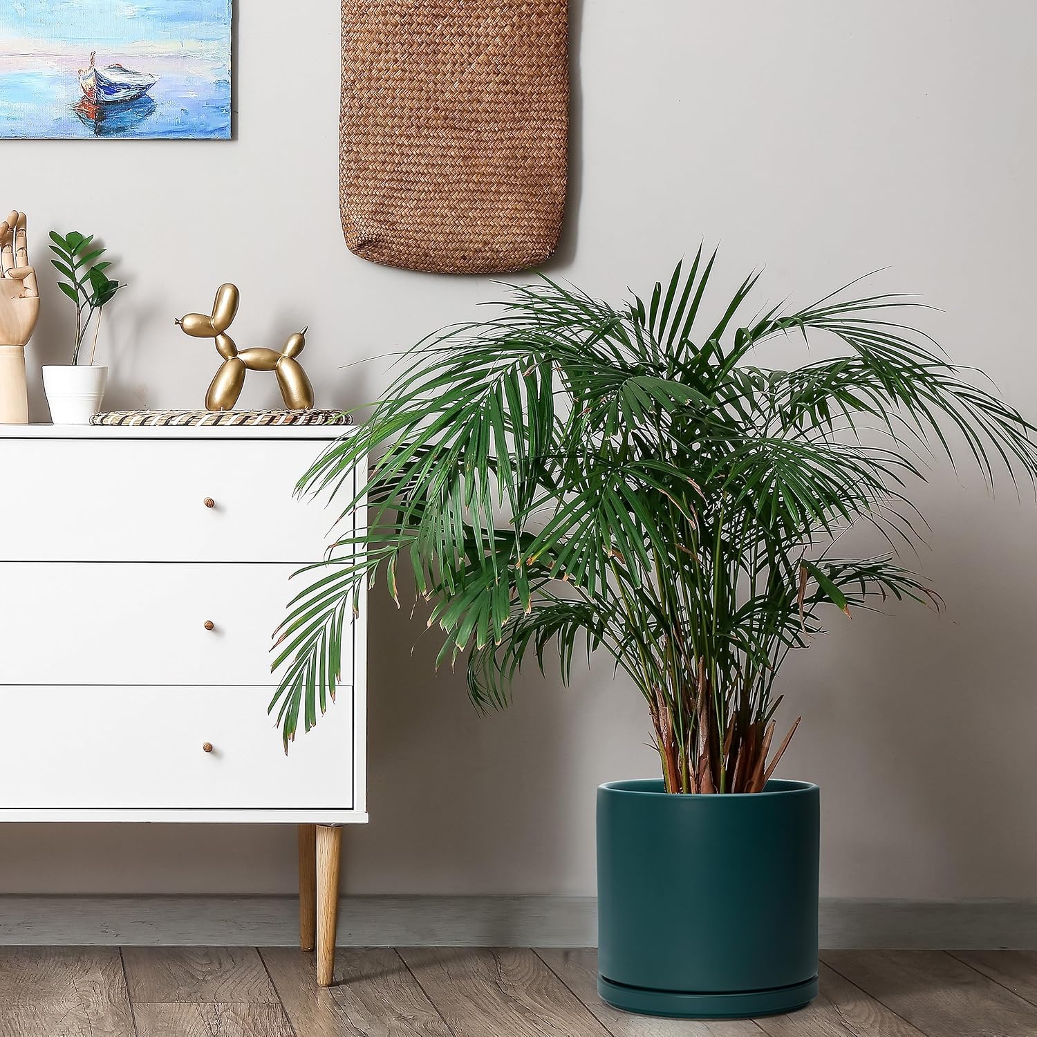 D'vine Dev Set of 2 Plants Pots, 10 Inch Ceramic Planter Pot for Plants with Drainage Hole and Saucer, Teal, 94-V-E-9