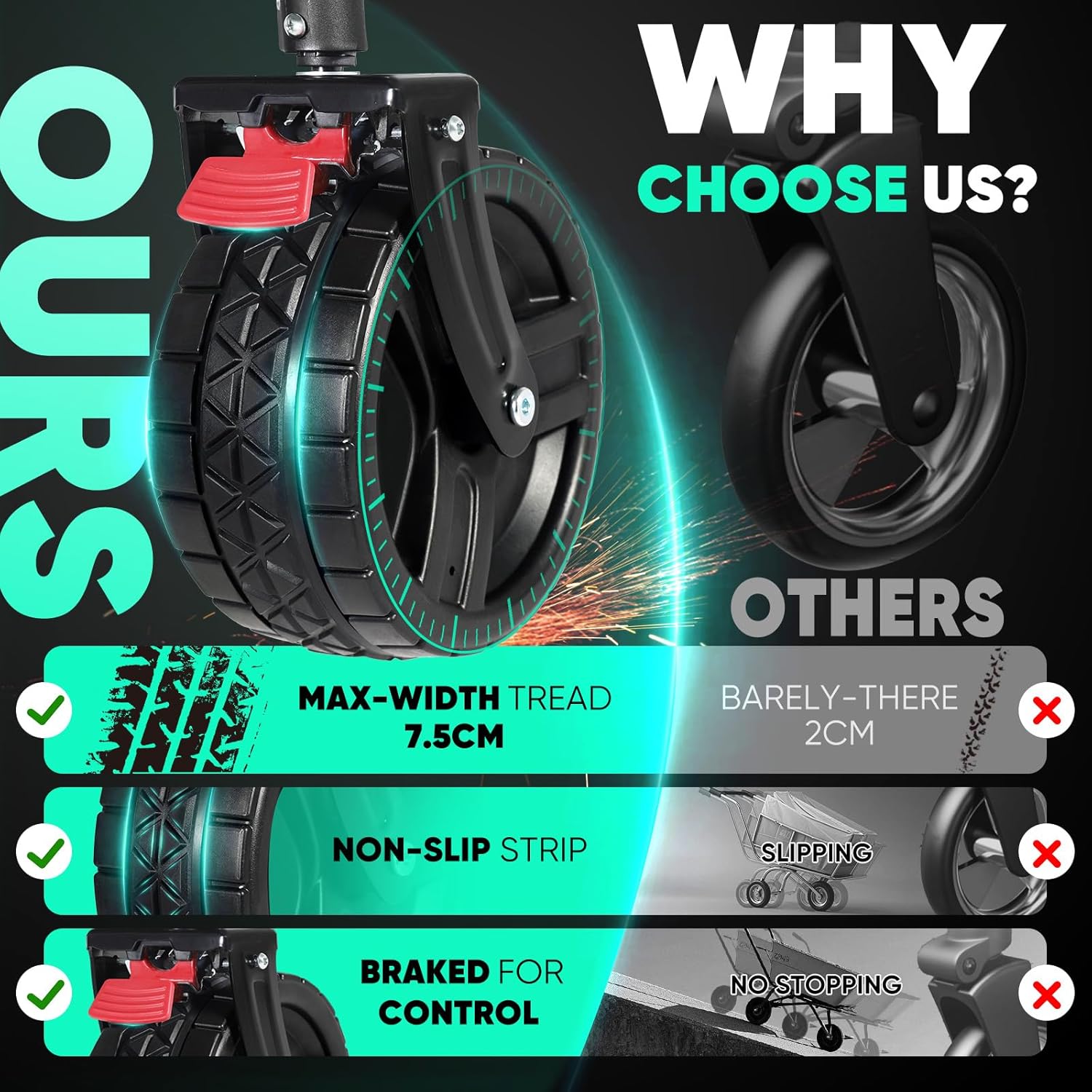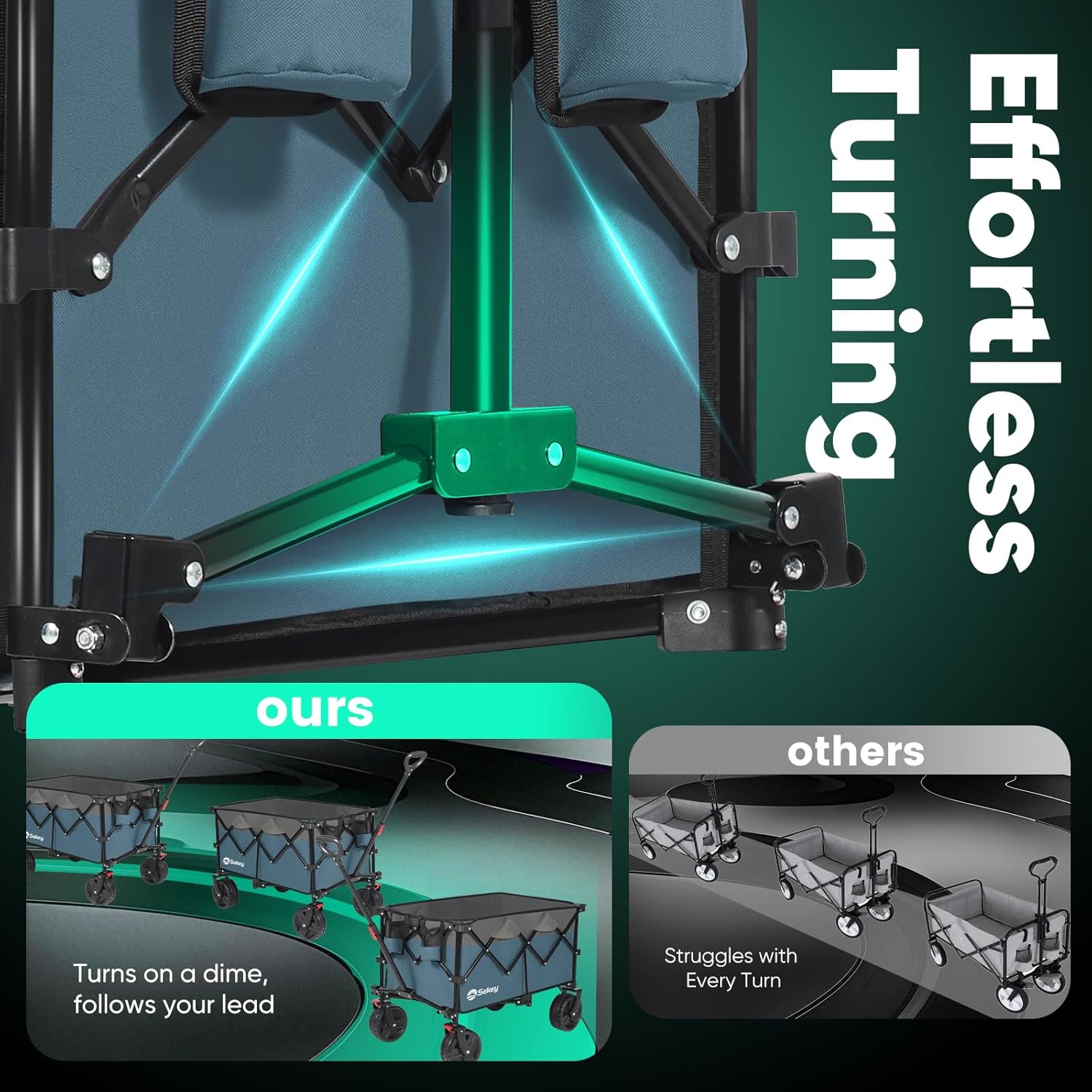 - ใ๐๐จ ๐๐ง๐ฒ๐ฐ๐ก๐๐ซ๐ ๐๐ก๐๐๐ฅ๐ฌใ: Featuring ๐" ๐๐ข๐๐ฆ๐๐ญ๐๐ซ ๐ฐ๐ก๐๐๐ฅ๐ฌ ๐๐ง๐ ๐" ๐ฐ๐ข๐๐ ๐ญ๐ซ๐๐๐๐ฌ, Sekey wagon glides effortlessly over sand and rough terrain. The ๐๐ง๐ญ๐ข-๐ฌ๐ฅ๐ข๐ฉ ๐ซ๐ฎ๐๐๐๐ซ strip enhances traction and reduces vibrations, while the ๐๐ฎ๐ข๐ฅ๐ญ-๐ข๐ง ๐๐ซ๐๐ค๐๐ฌ provide reliable stopping power wherever you go.