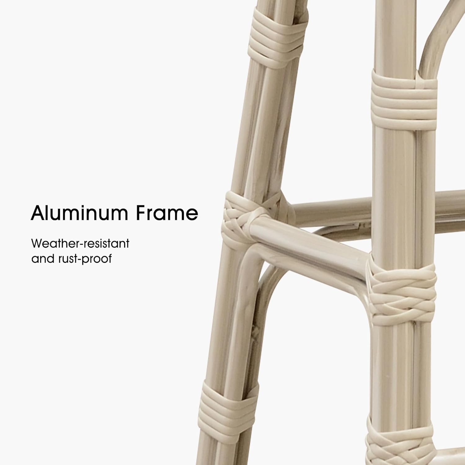- 【White Distressed Finish】It's made of powder-coated aluminum that's weather-resistant and rust-resistant. Then a white distressed finish is hand applied to make these aluminum bar chairs look vintage.