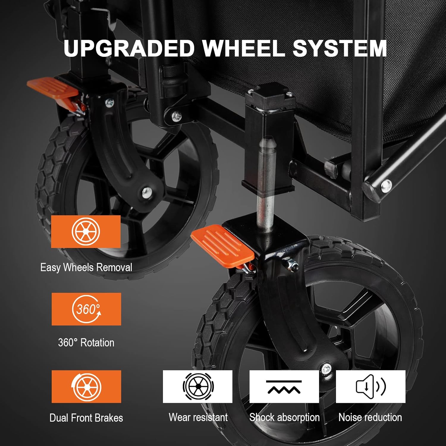 - Master Maneuverability: Glide smoothly with our flexible, telescoping handle, high-quality PVC multiple-terrain wheels, 360-degree rotating front wheels, and brakes for stability on slopes. You choose your wagon's path, just as you choose your life's direction, no matter the terrain.