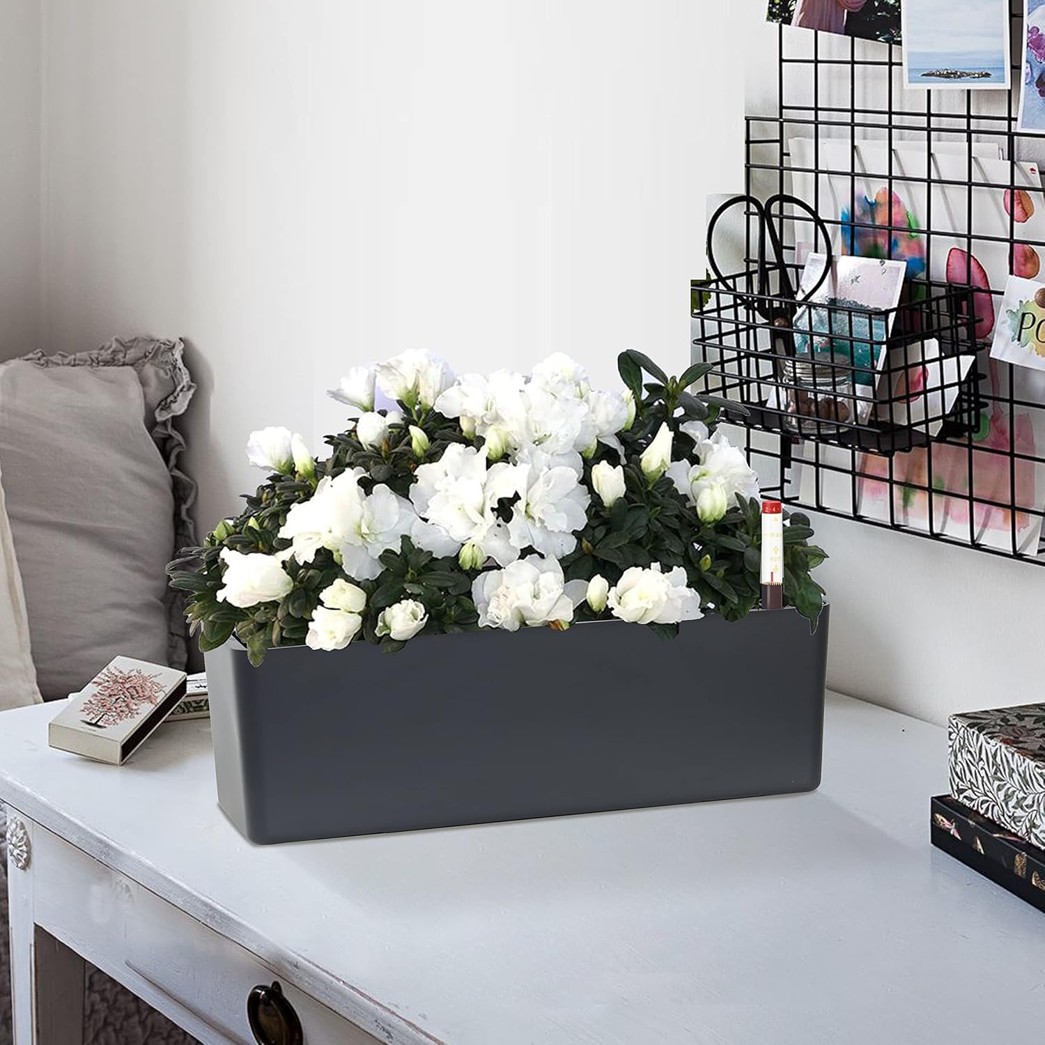 GardenBasix Elongated Self Watering Planter Pots 2-Pack Window Box 5.5 x 16 inch Indoor Home Garden Modern Decorative Pot for All House Plants Flowers Herbs (Dark Grey,2)