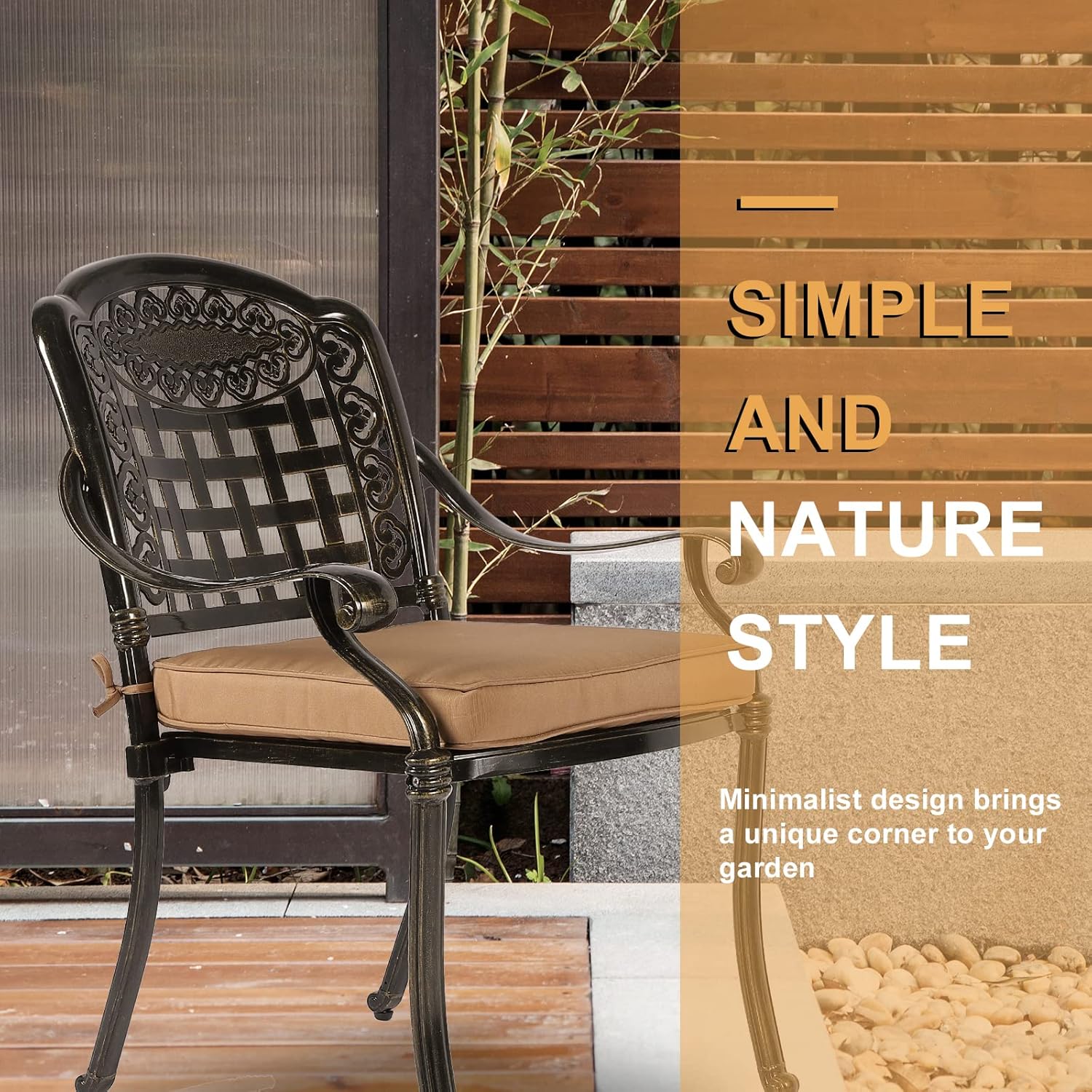 - 【Considerate Design】 - Each leg of this patio chair is equipped with adjustable levelers for non-flat surface. The curved backrest of the chair fits your back, wide seats allow you to sit comfortably, curved armrests allow you to place your arms naturally to get rid of the fatigue of the day and make your leisure time more enjoyable.