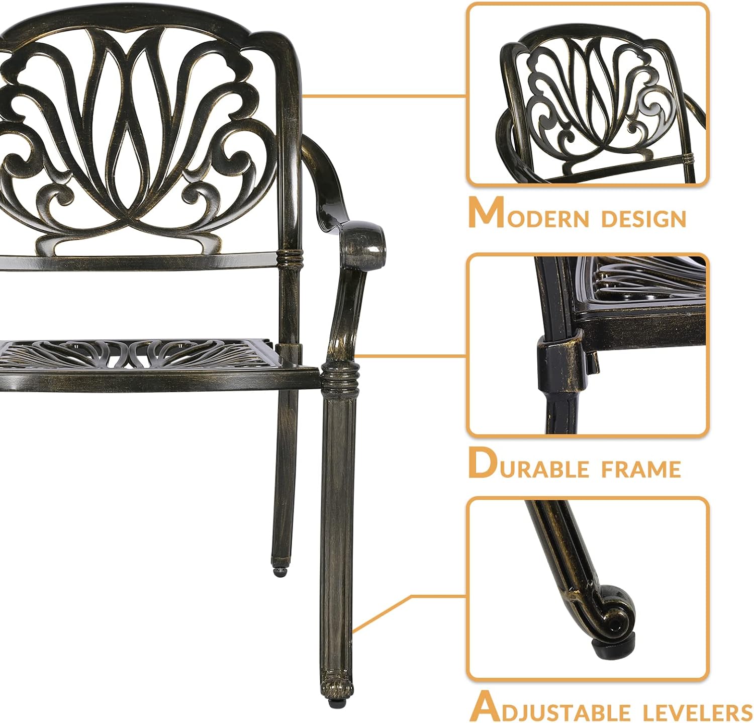 - 【Durable 3-Piece Dining Set】 - Made from cast aluminum for long-term durability. Resistant to rust, weather, fade, crack. This patio set includes 1 round table, 2 chairs, and they stay in perfect condition regardless of the weather. It's also easier than ever to clean, just use a dry or damp rag to wipe down.