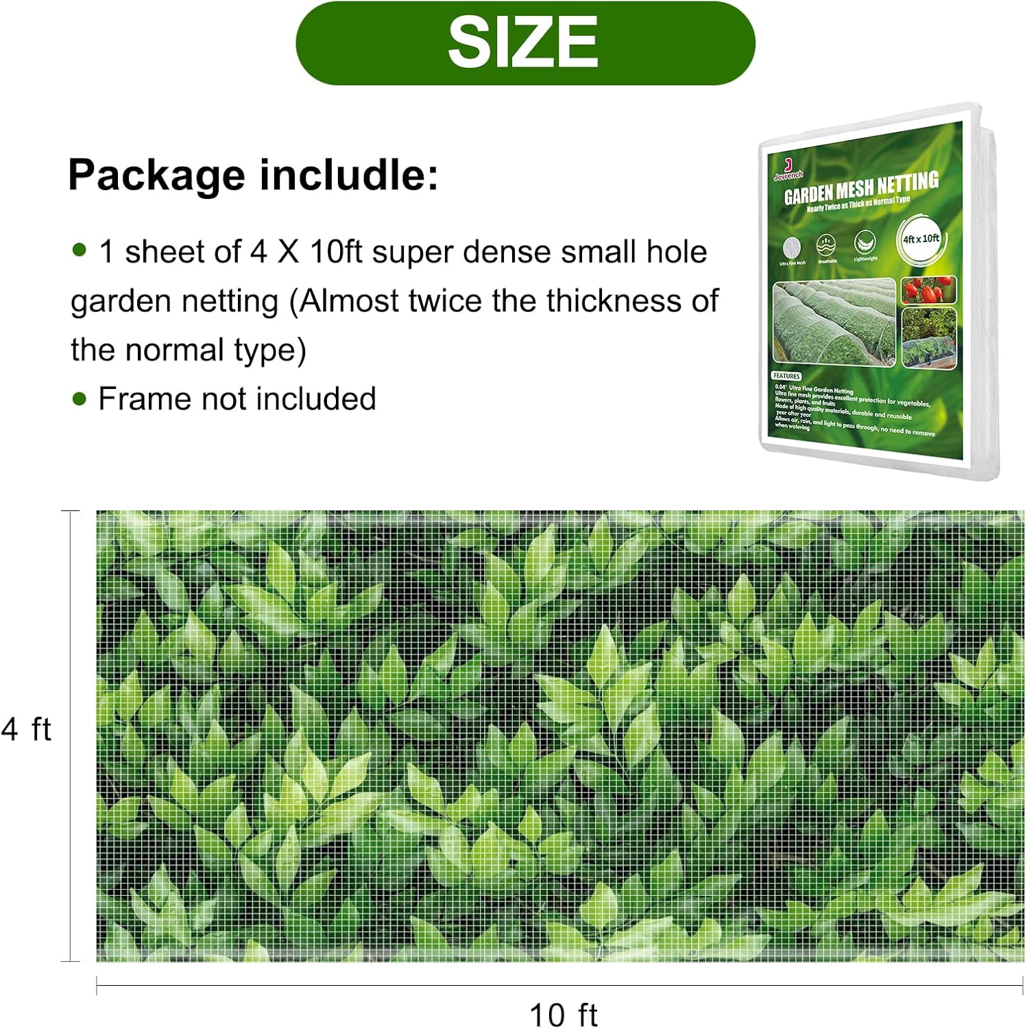 Garden Netting, Jevrench Durable Ultra Fine Garden Netting, Garden Plant Cover Row Cover Makes Plants, Vegetables, Fruits, and Flowers Grow Better (4ft x 10ft)