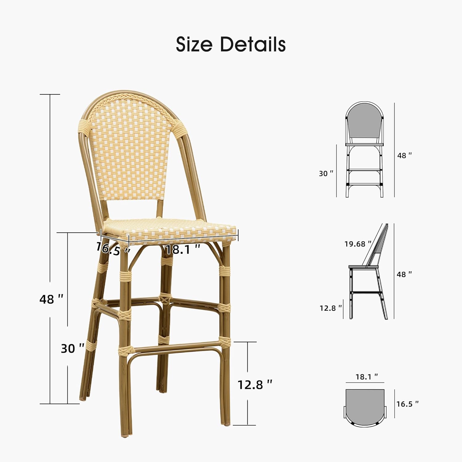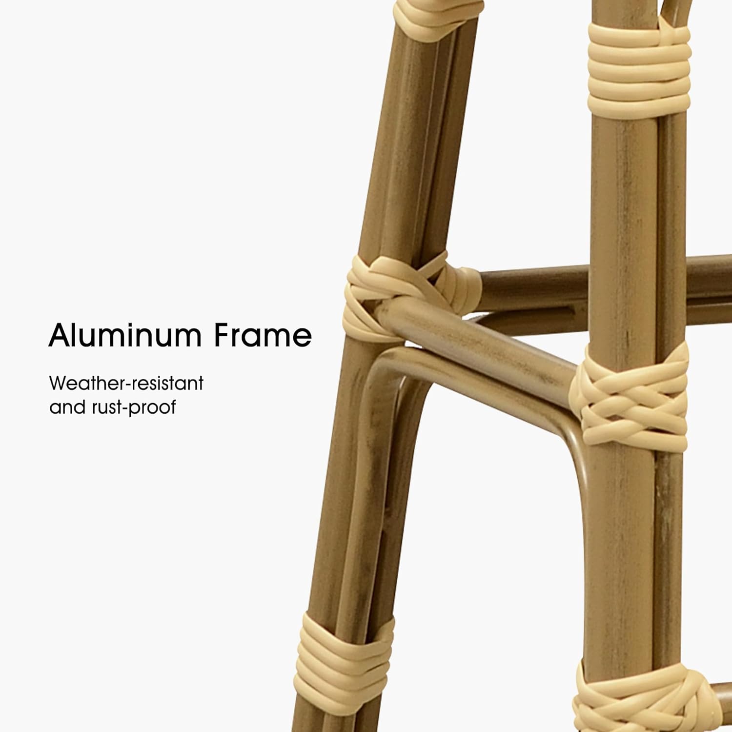 - Bamboo Print Finish: It's made of powder-coated aluminum that's weather-resistant and rust-resistant. Then a bamboo-look finish is hand applied to make these aluminum bar chairs look bamboo.