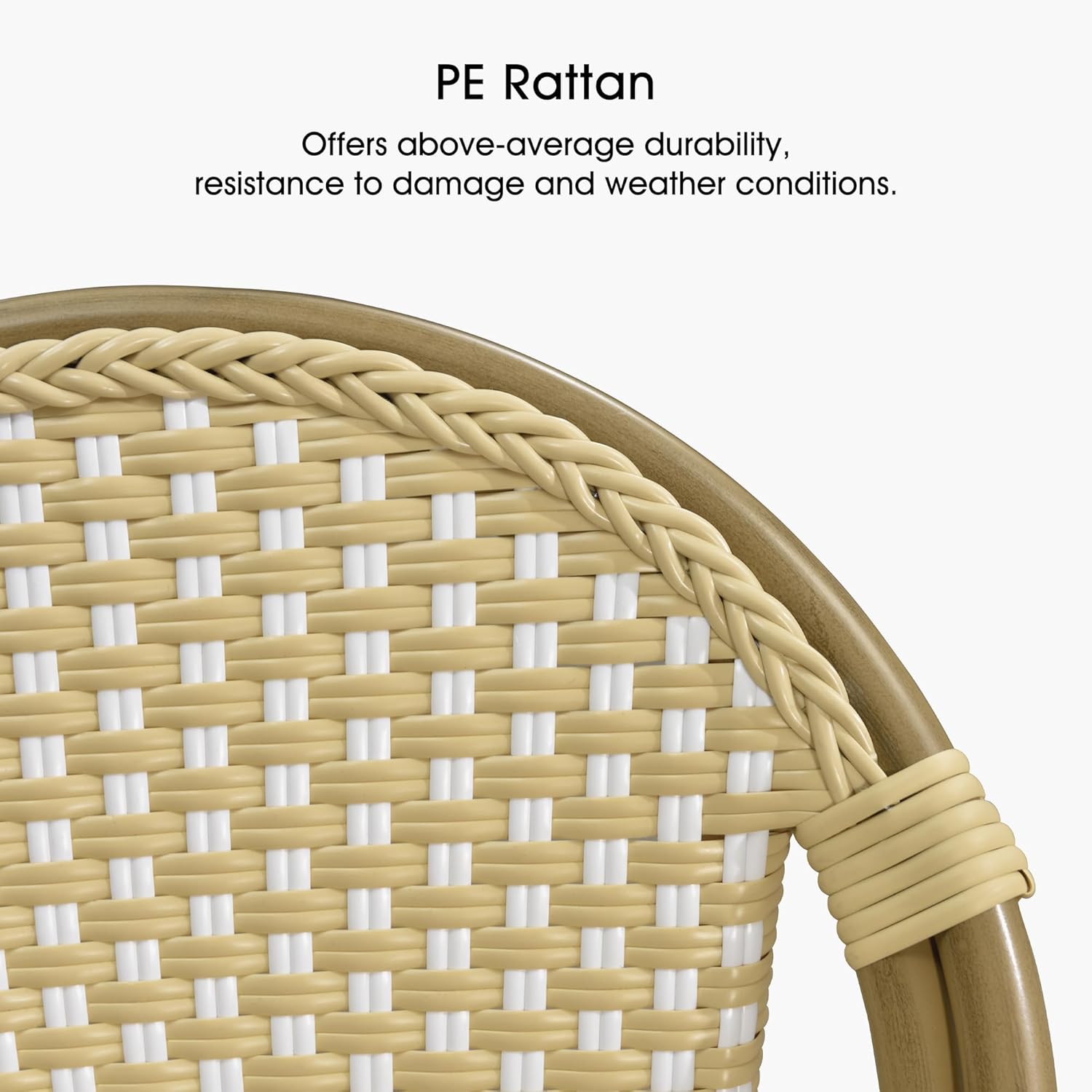 PURPLE LEAF French Bar Stool Set of 4 Bamboo Print Finish Patio Bar Stools with Back Rattan Bar Chairs Wicker Bar Height Stool 30" with Footrest Kitchen Island Stools Outdoor Barstool Cream Yellow