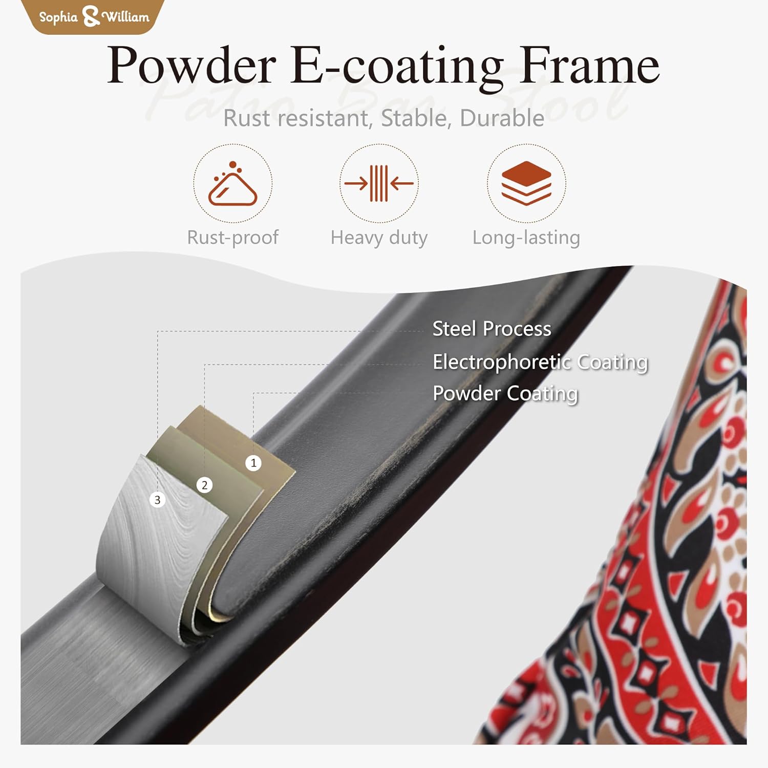 - Premium Material: The patio bar set is constructed with all heavy-duty iron with E-coating for rust and weather resistance, sturdy and durable. High quality spun polyester cushion is soft to the touch, dries quickly, and resists fading