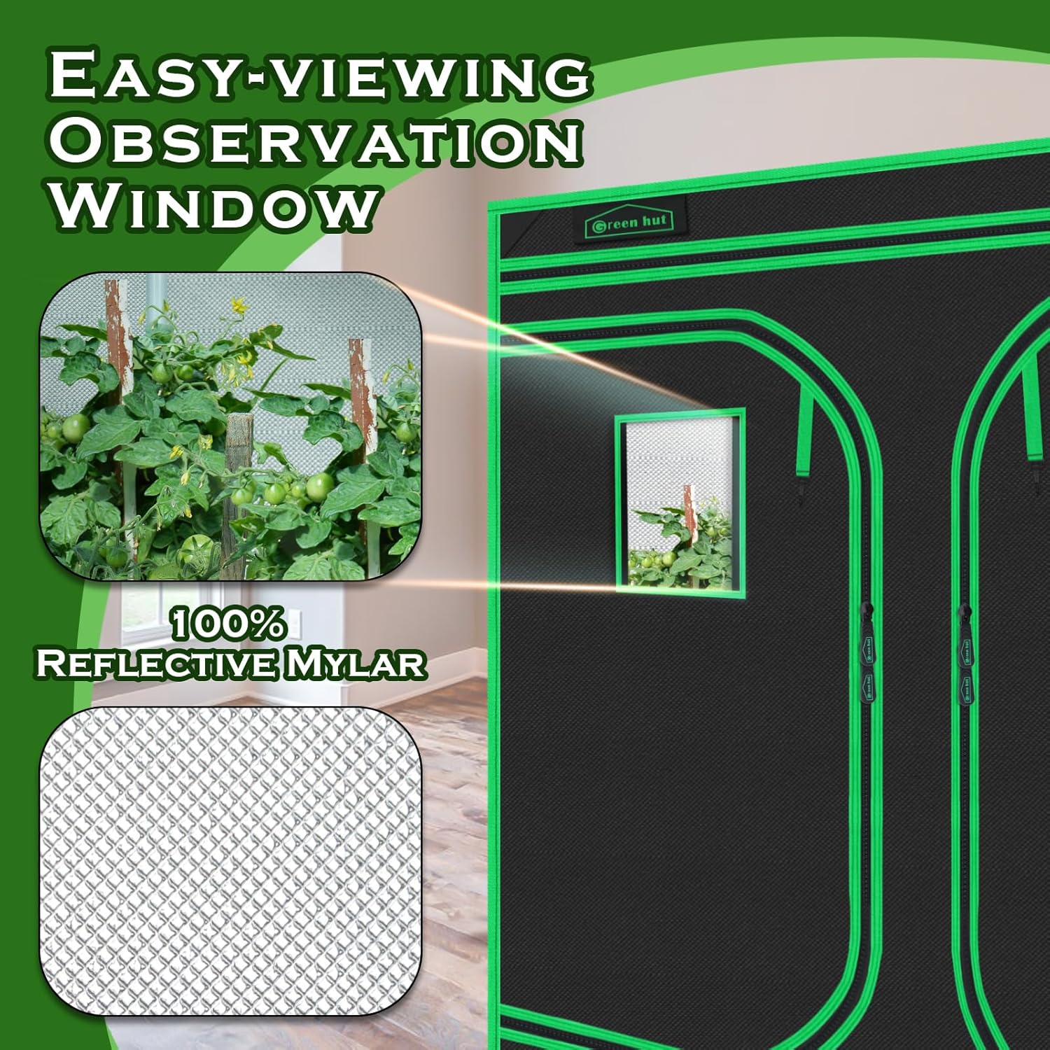 - EASY OBSERVATION --- A transparent visible window set on the grow tent, you can check the growth status of your plants at any time; The window at the bottom is helpful for heat dissipation; The hook and loop fasteners on the cover of the window are easier for you to open and observe inside; It is also equipped with a removable floor tray that is convenient to be cleaned and conserved.