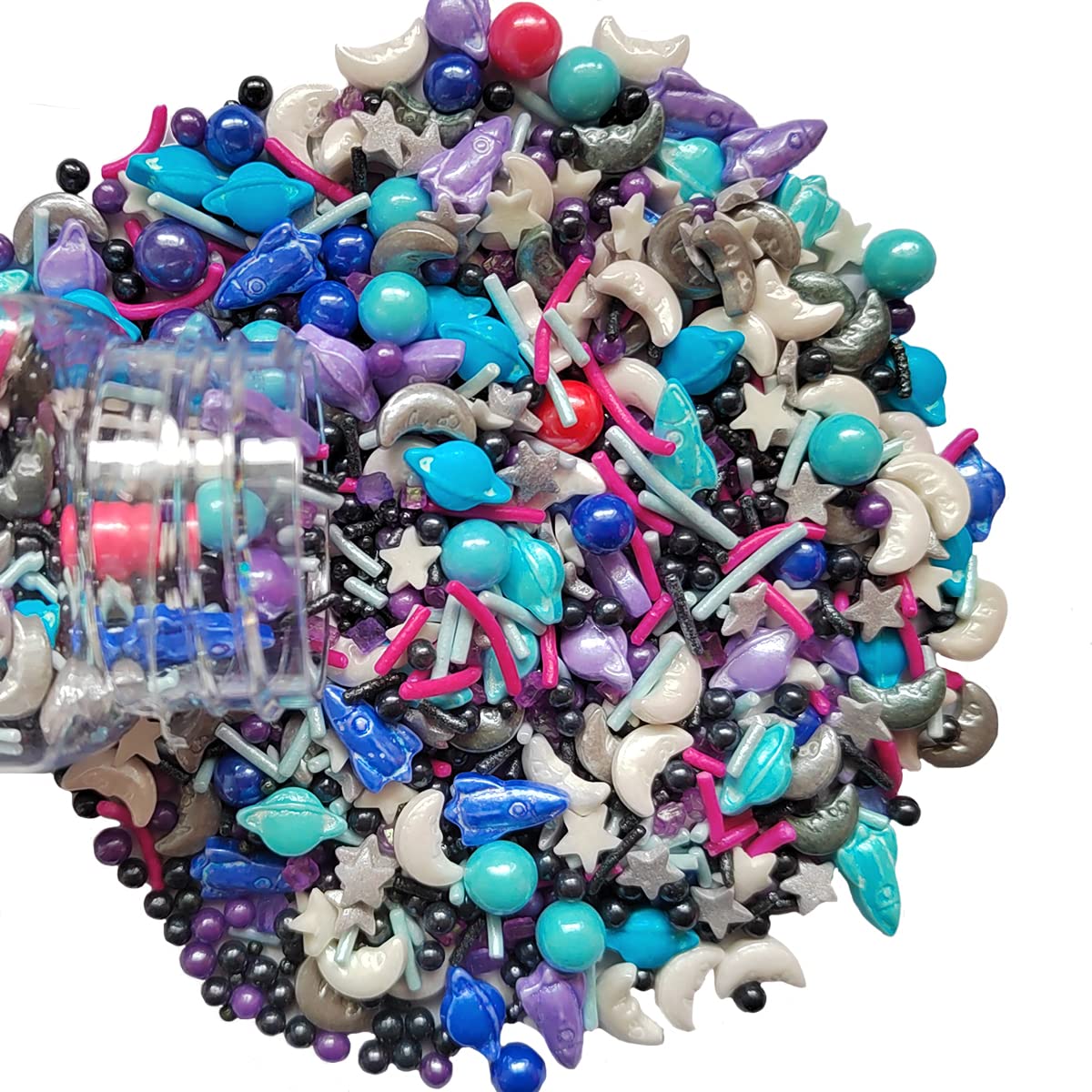- Specifications - 1 bottle edible space theme sprinkles. Each bottle net weight 3.35 ounces, 95 Grams