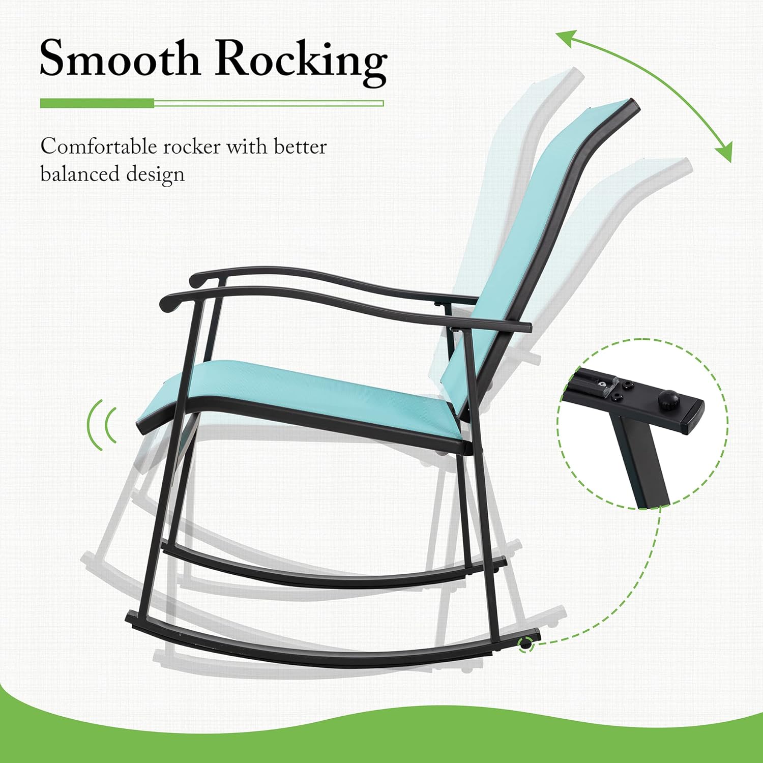 - Smooth Rocking: The strong metal frame provides supper support and balance for the rocker. You will enjoy your outdoor leisure time on the rocker without any worry of falling down.