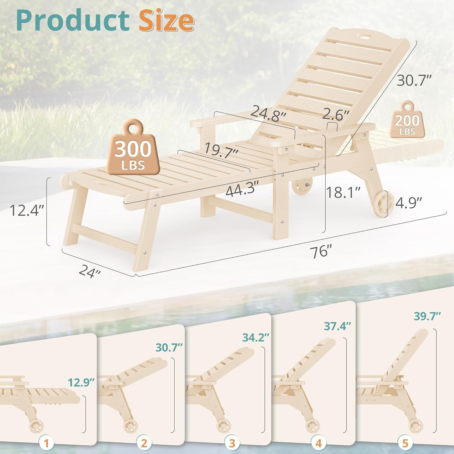 - Movable Wheels: This lounge chair also has wheels, making it easy to move to different areas such as the poolside, beach, backyard, and garden; This allows you to fully enjoy the beautiful outdoors