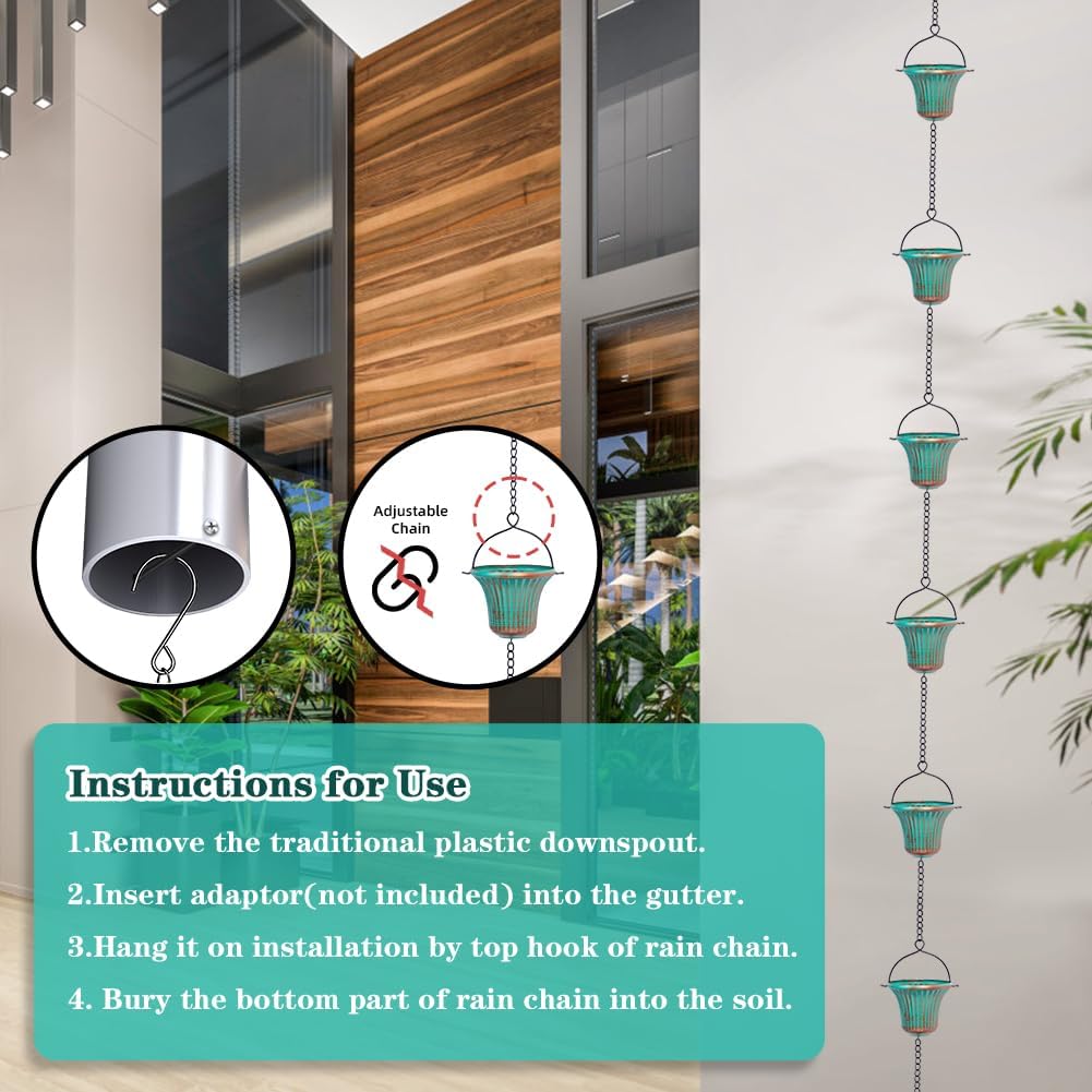 - Easy Installation: No tool required, rain chains for downspouts come with a "S" shaped hook, simply hang it on the gutter adapter(The Packaging is not included, please buy it yourself). If you have any question after receiving giole rain chain, please feel free to contact us and we will deal with your problem at the first time