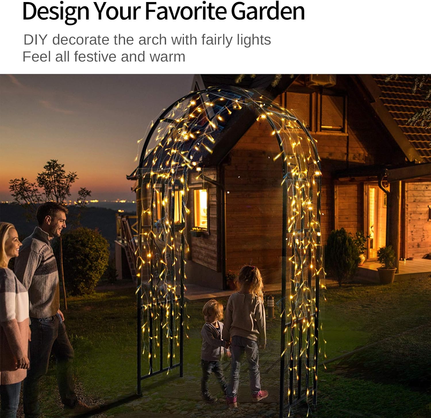 - [Decorate Your Garden]: Our product adds as a beautiful addition to your garden.Perfect choice for your favourite climbing plants, which you can choose to plant in different seasons, like climbing vines, rose, morning glories, wisteria, grape vines or you can DIY decorate the arbor with fairy lights or voile. Either ways, it is sure to add beauty to your garden.