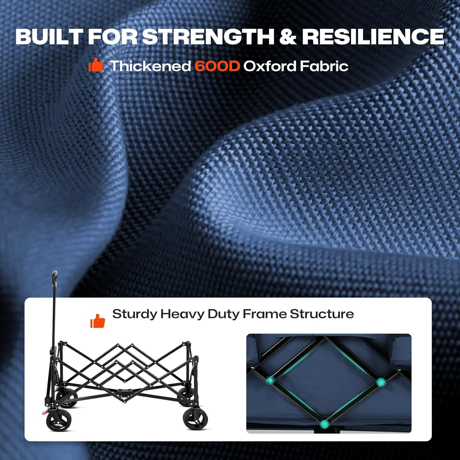 - [Built to Last]: Crafted from rugged Q195 carbon steel and durable Oxford fabric, Overmont foldable wagon handles the toughest tasks. Front wheels with brake and swivel functions ensure smooth control on any terrain. Experience superior quality and durability with every use.