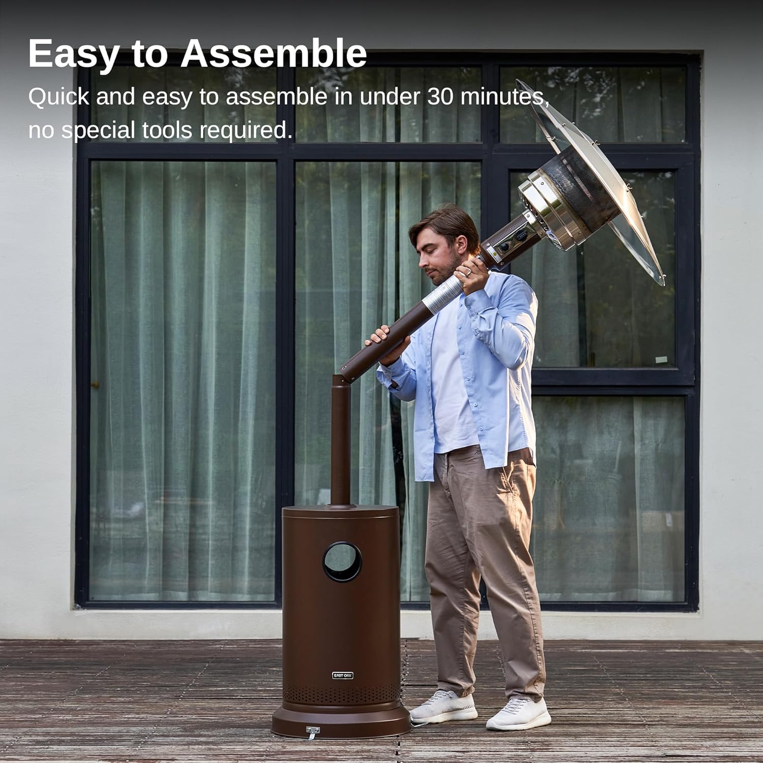 - ๐๐ฎ๐๐ ๐๐ผ ๐๐๐๐ฒ๐บ๐ฏ๐น๐ฒ ๐ฎ๐ป๐ฑ ๐ ๐ผ๐๐ฒ: Some parts are assembled in advance, and the upgraded reflector shield only needs to be assembled with three reflector pieces. The installation of the entire product, following the instructions, can be completed in about 30 minutes. The Outdoor Patio Heater has two wheels on the bottom for smooth movement