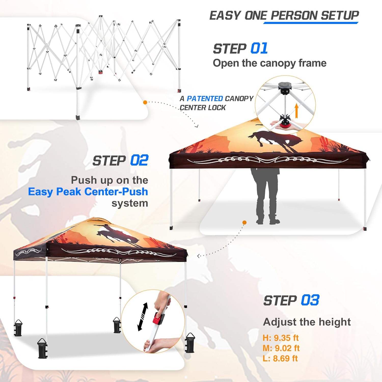 EAGLE PEAK Pop Up Canopy Tent with Wheeled Carry Bag, 8 Stakes, 4 Ropes, 4 Weight Bags, Easy Set Up Tent Canopy, 10x10 ft, 100sqft of Shade, Cowboy
