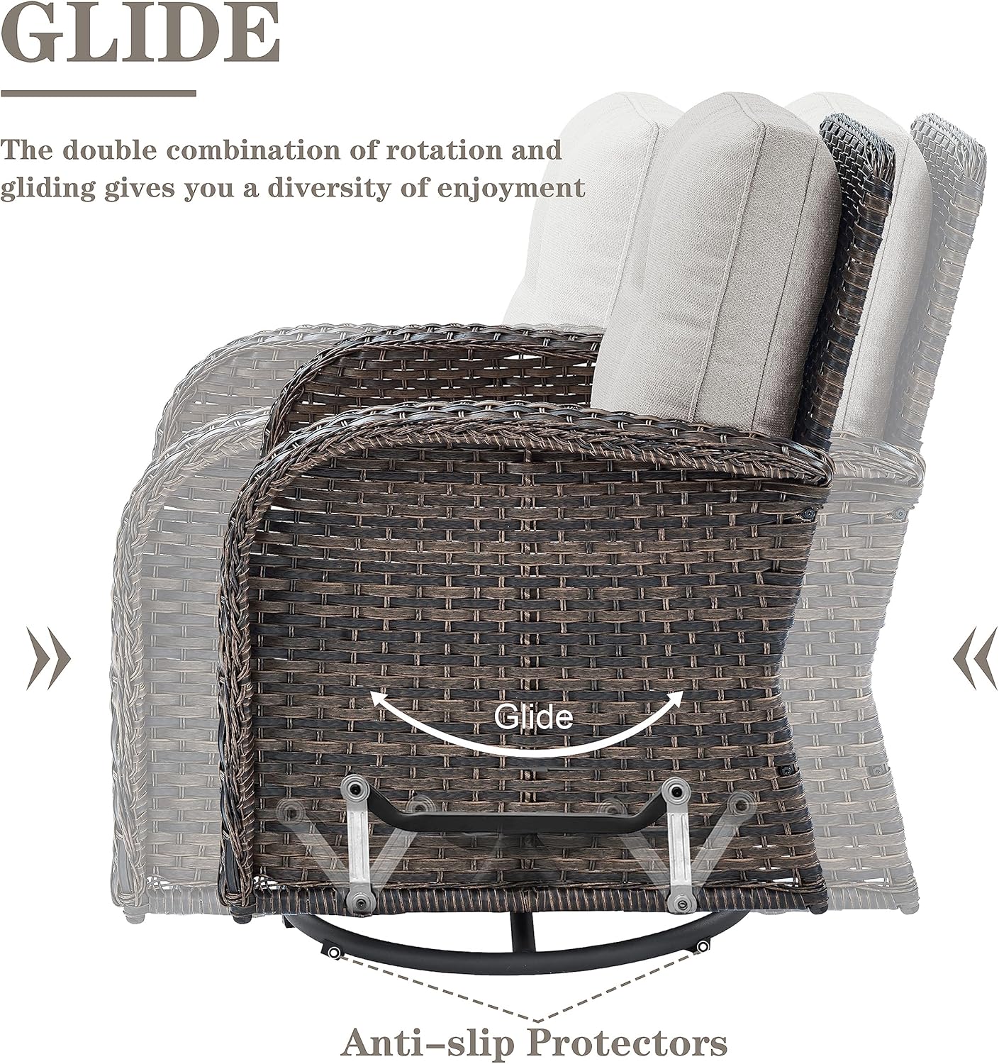 - 4.Beautiful And Durable: Relax in the beautiful outdoors with this perfect furniture set. Our patio wicker swivel chair and loveseat set with high quality foam cushion, comfortable and soft rebound good. The cushion cover is made of olefin outdoor water-resistant fabric. The seat and backrest are made of beautifully woven wicker coupled with ergonomic design, making it a classic upgrade for any porch or patio.