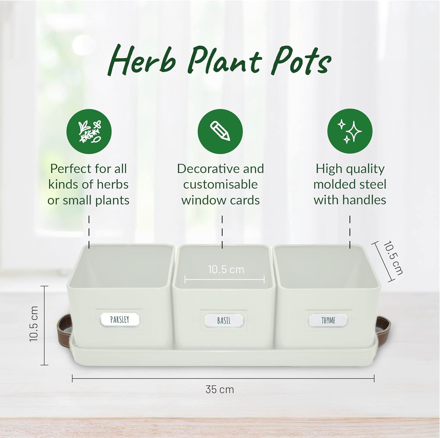- π» γ Space-Saving γ Enhance your kitchen herb garden with our 3-pack Warmstone indoor herb pots (4.1" x 4.1" x 3.9"). Includes 5 printed and 5 blank cards for organization, a 4.3" x 13.8" x 1" tray, and pots with drainage holes. Perfect for a lively, fresh-scented windowsill garden.
