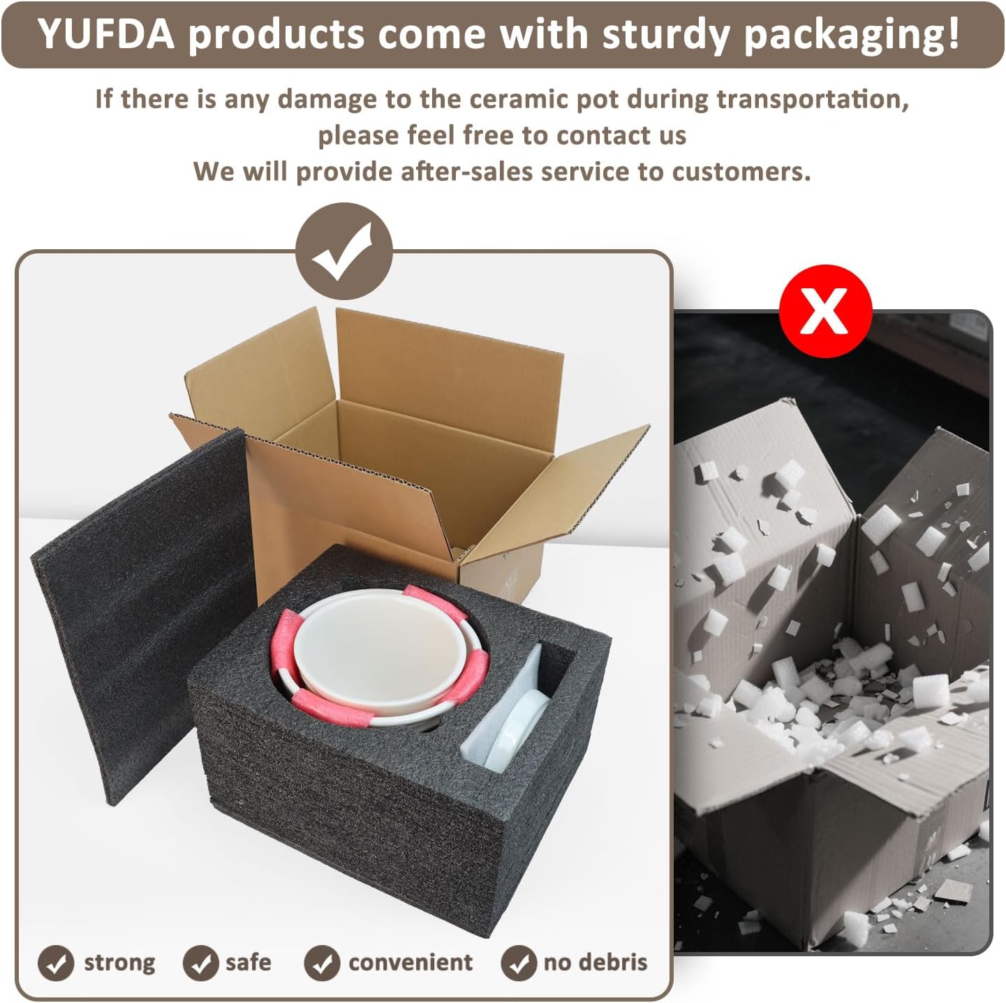- 【Satisfactory Customer Service】If you have received a broken or unsatisfactory flower pots, please feel free to contact YUFDA and we will provide you with a satisfactory solution within 24 hours.