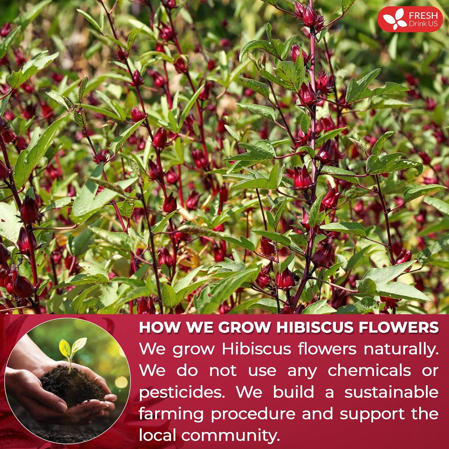 FreshDrinkUS Premium 40 Hibiscus Tea Bags, 100% Natural, Pure Hibiscus, Loose Flower Herbal Tea. No Sugar, No Caffeine, No Gluten, Vegan