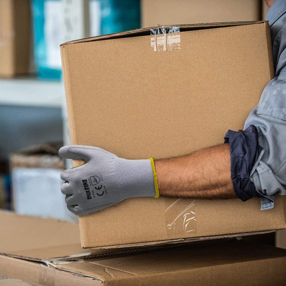 DULFINE Safety Work Gloves for Men PU Coated 60 Pairs Bulk Pack,Grey Seamless Knit Glove with thin Polyurethane Coated Smooth Grip on Palm & Fingers,Ideal for General Duty Work (Extra Large)