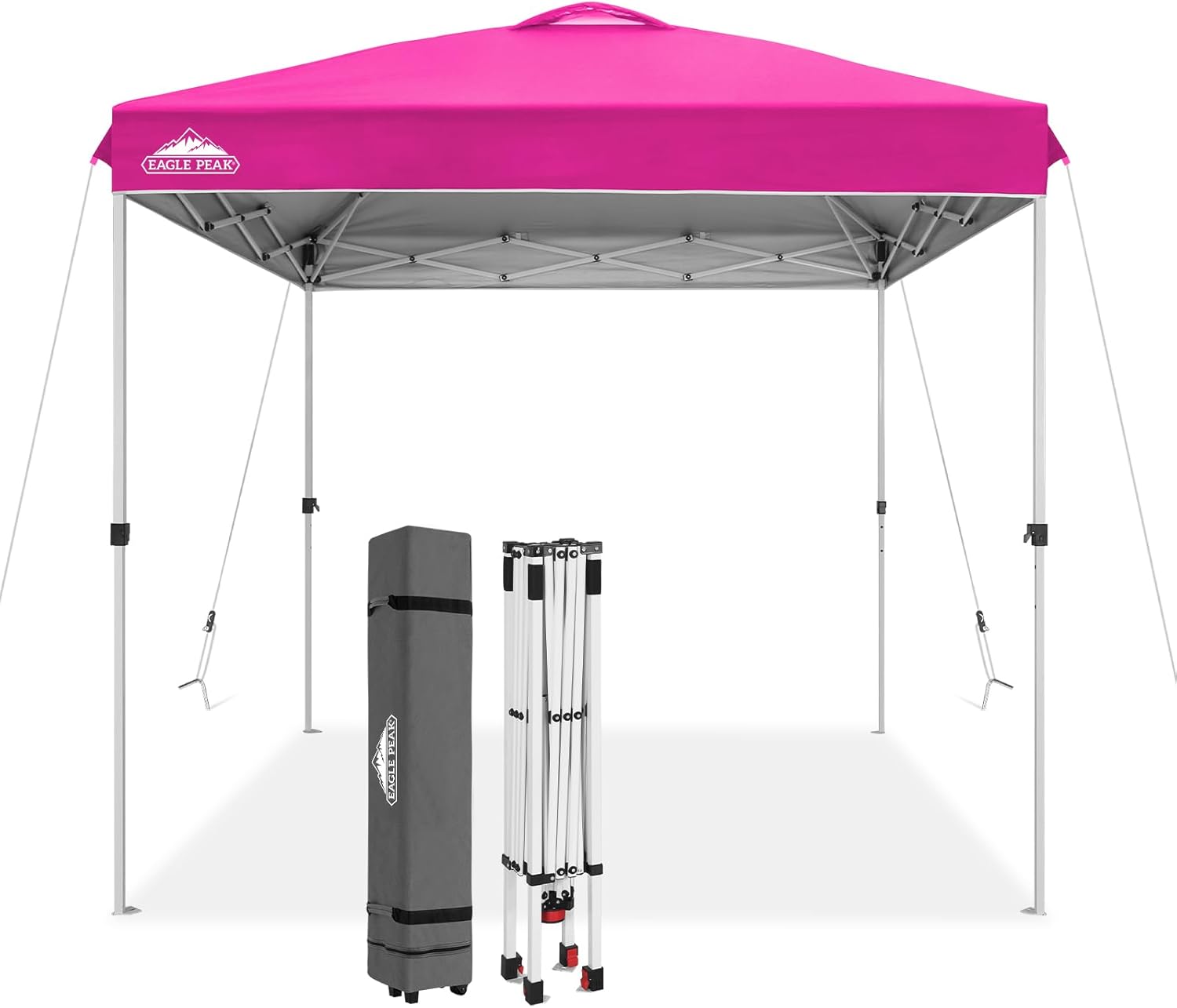 EAGLE PEAK Pop Up Canopy Tent with Wheeled Carry Bag, 8 Stakes, 4 Ropes, Easy Set Up Tent Canopy, 8x8 ft, Pink