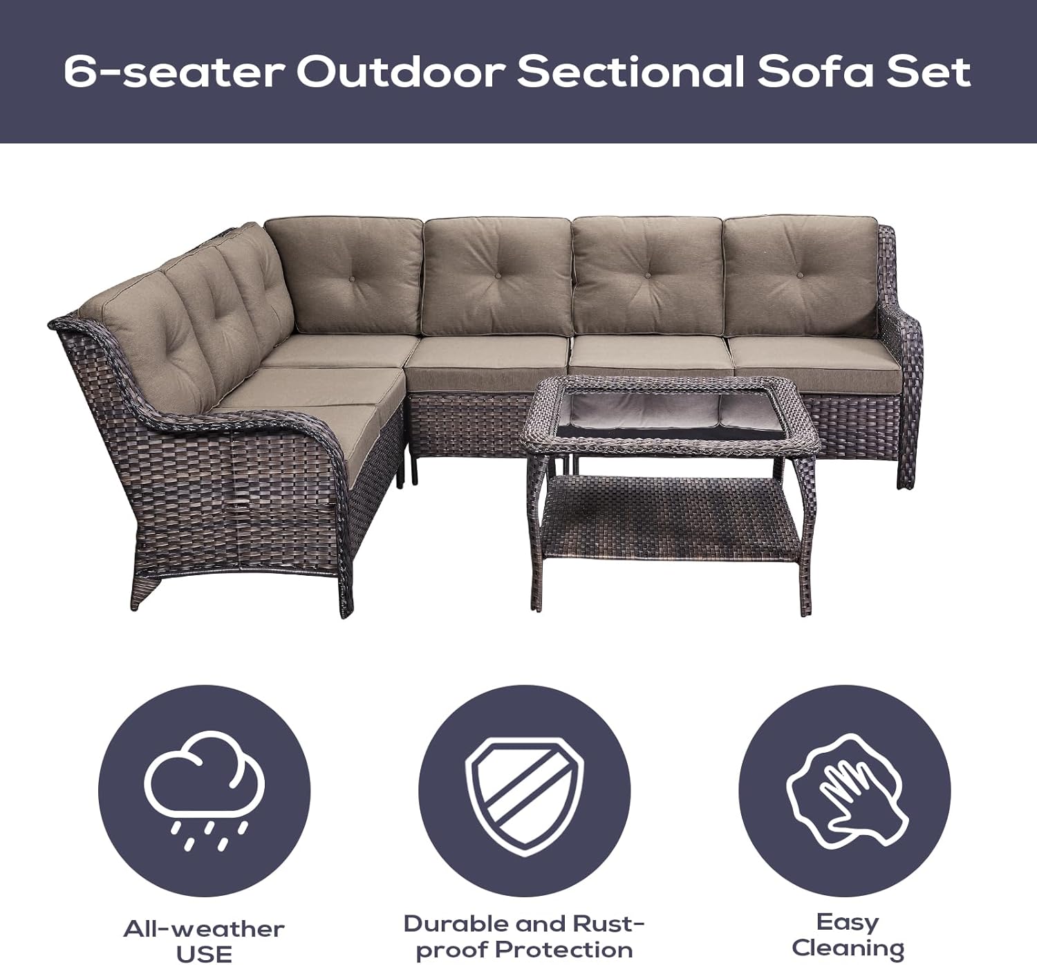 - 3.Resilient All-Weather Patio Bliss: Endure all weather conditions with our all-weather patio sectional sofa furniture set. Built with high-quality wicker and a sturdy frame, it promises long-lasting use, ensuring you enjoy your outdoor oasis regardless of the elements. Don't let the weather dampen your outdoor experience.