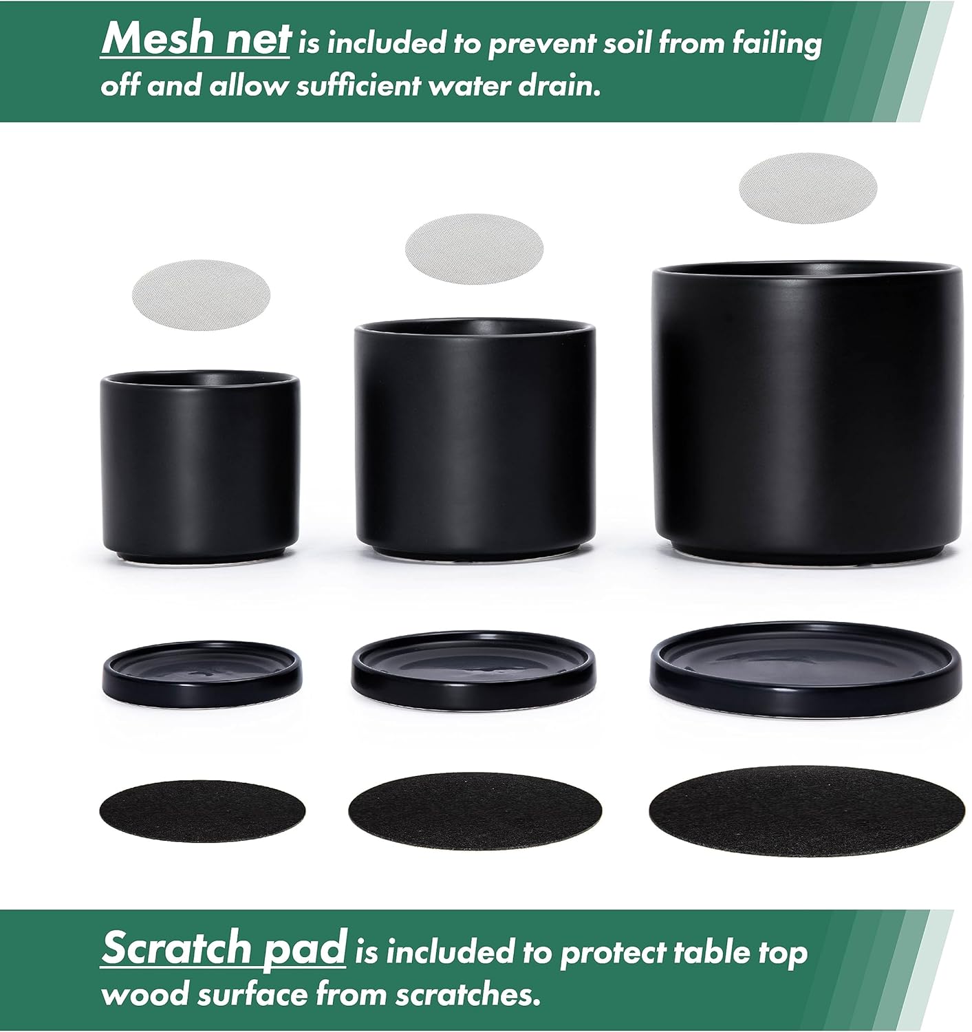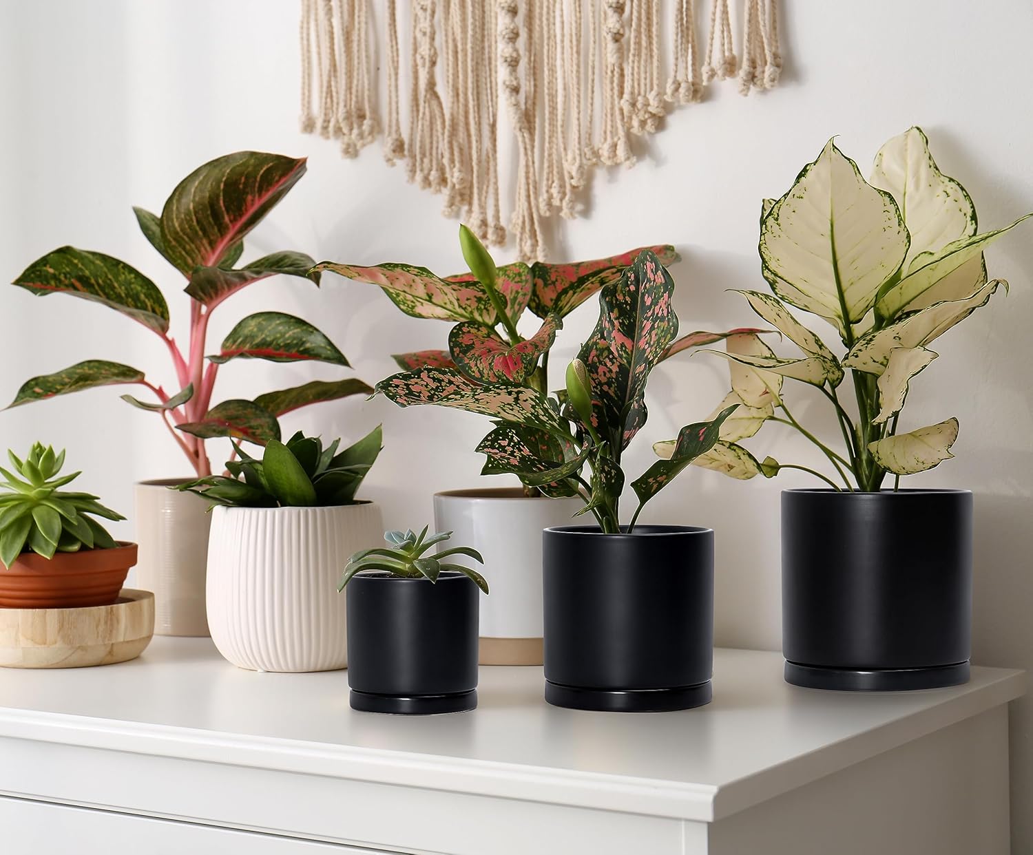 D'vine Dev Black Terracotta Pots for Plants, 4.2 Inch 5.3 Inch 6.5 Inch, Succulent Planter Pot with Drainage and Saucer, 40-T-A-2