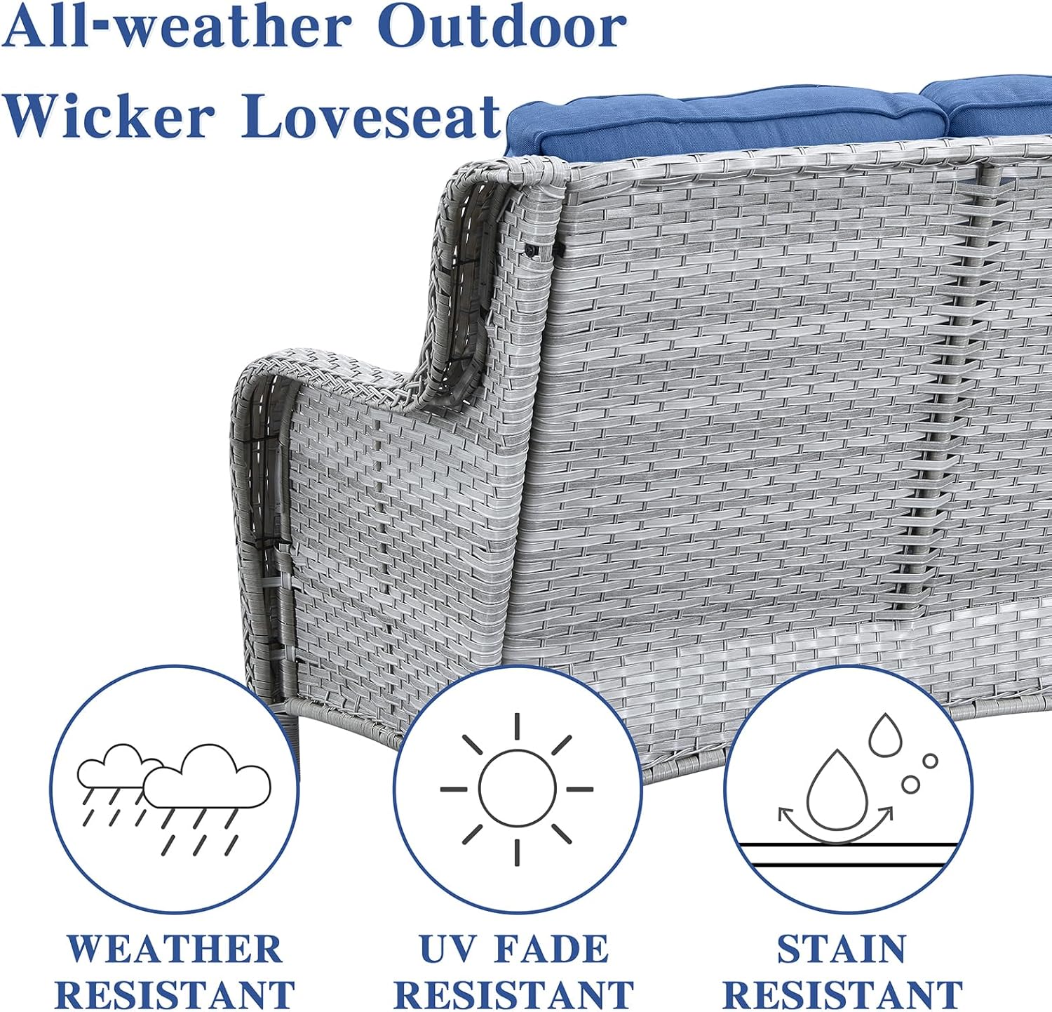 - Color : Light Grey Wicker / Blue Cushion