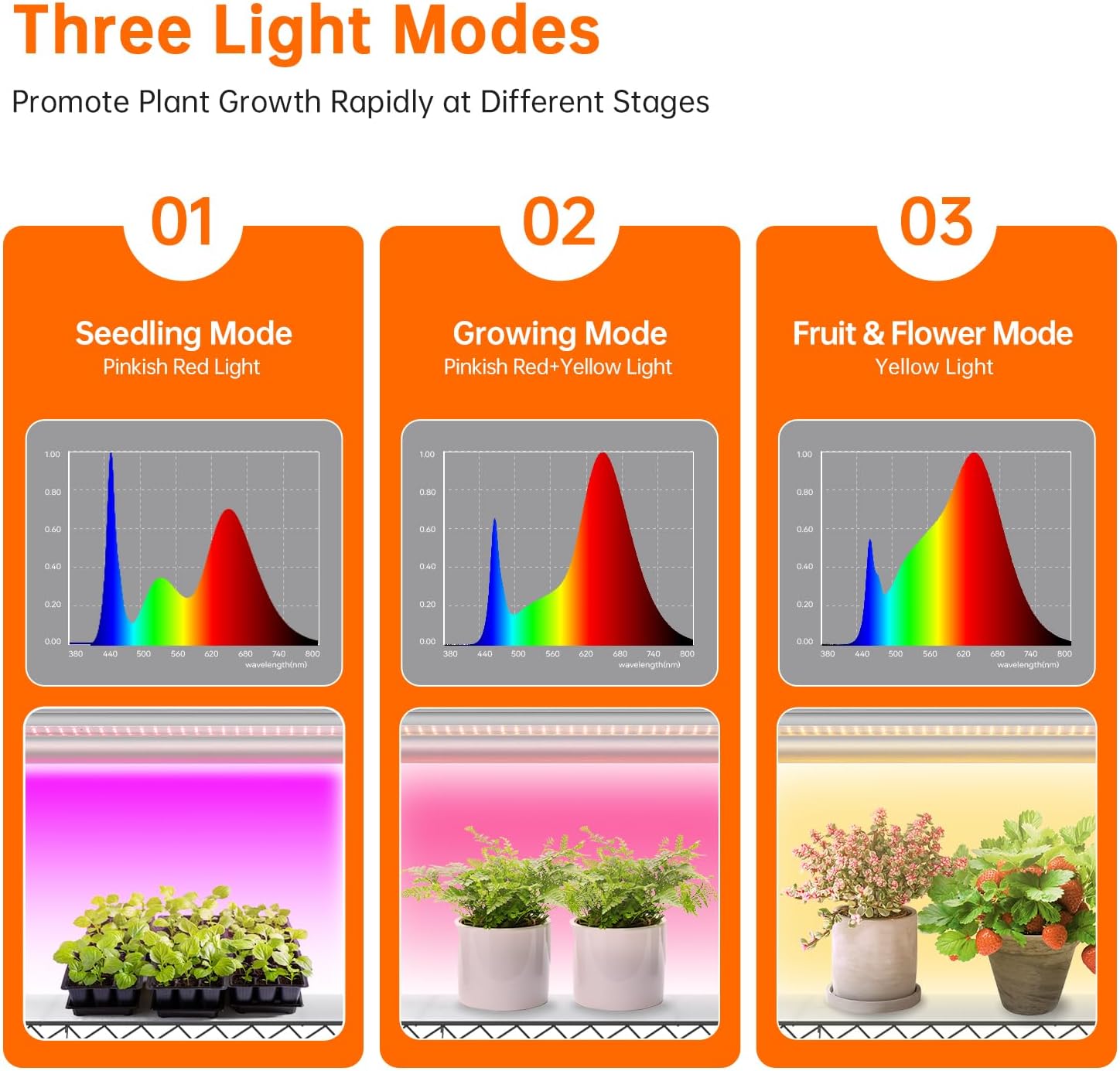 - 【Adjustable Color Light with Timer】Provides optimal light conditions for every growth stage with its three lighting modes(Pink Purple/Yellow/Mix Light) - Seedling, Growing, and Blooming. 4/9/14 timer mode, travel or work without worrying about plant growth, and fully automatic timer mode to take care of plant growth all year round