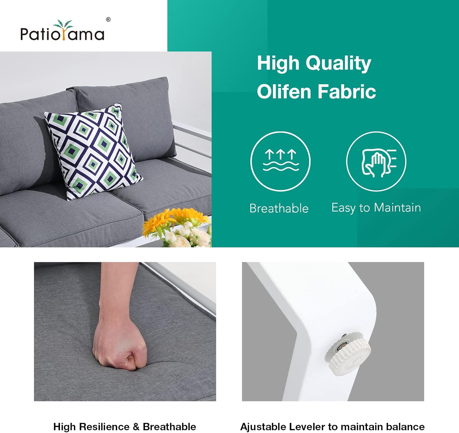 Patiorama Aluminum Patio Furniture Set, Outdoor Patio 3-Seater Sofa, 3 Seats Couch, All Weather White Metal Chair with Olefin Cushion, Deep Seating, 800 lbs Capacity, Deck, Garden-Grey Cushion