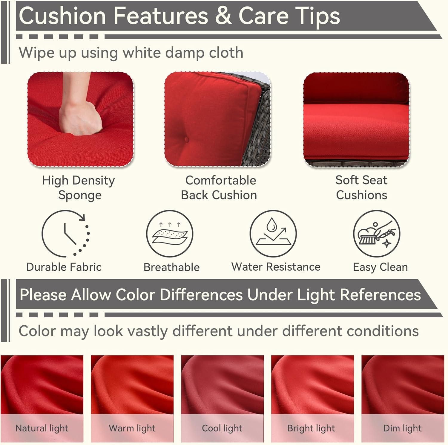 Patio Conversation Set 5-PCS Wicker Outdoor Furniture Conversation Set with 3-Seat Sofa, 2 Armchair, 2 Ottoman Patio Rattan Wicker Sectional Sofa Set with Olefin Cushion, Red