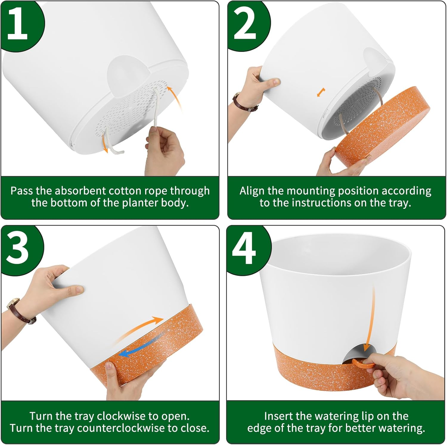 GARDIFE 12 inch Plant Pots, planters, Self Watering Pots, Large Plastic Flower pots with Deep Reservior and High Drainage Holes for Indoor Outdoor Plants and Flowers, White