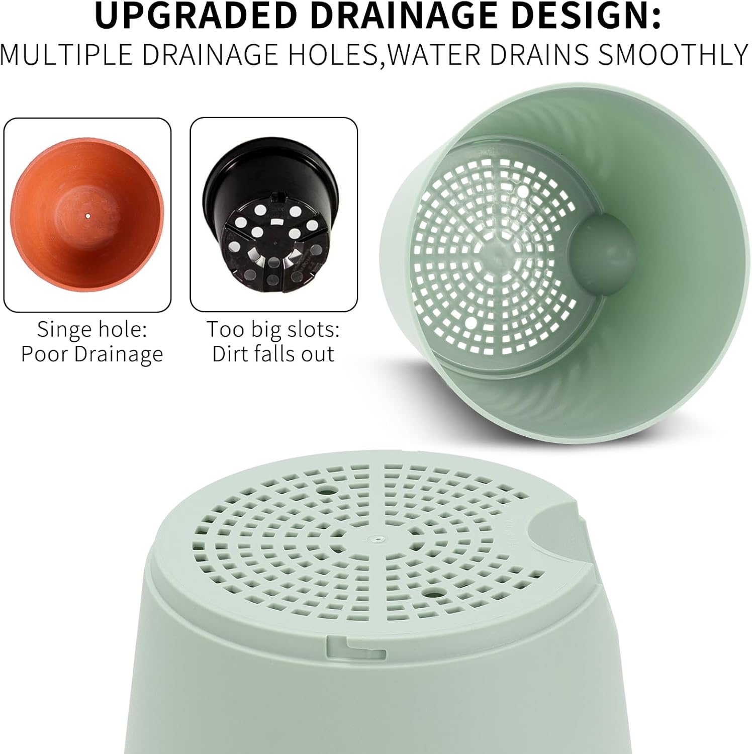 - 【Excellent Drainage Holes】The pot for plants come with multiple drainage holes in the bottom. The holes provide an air circulation system for the plant roots, which greatly reduces the problem of root rot of plants in a closed environment.