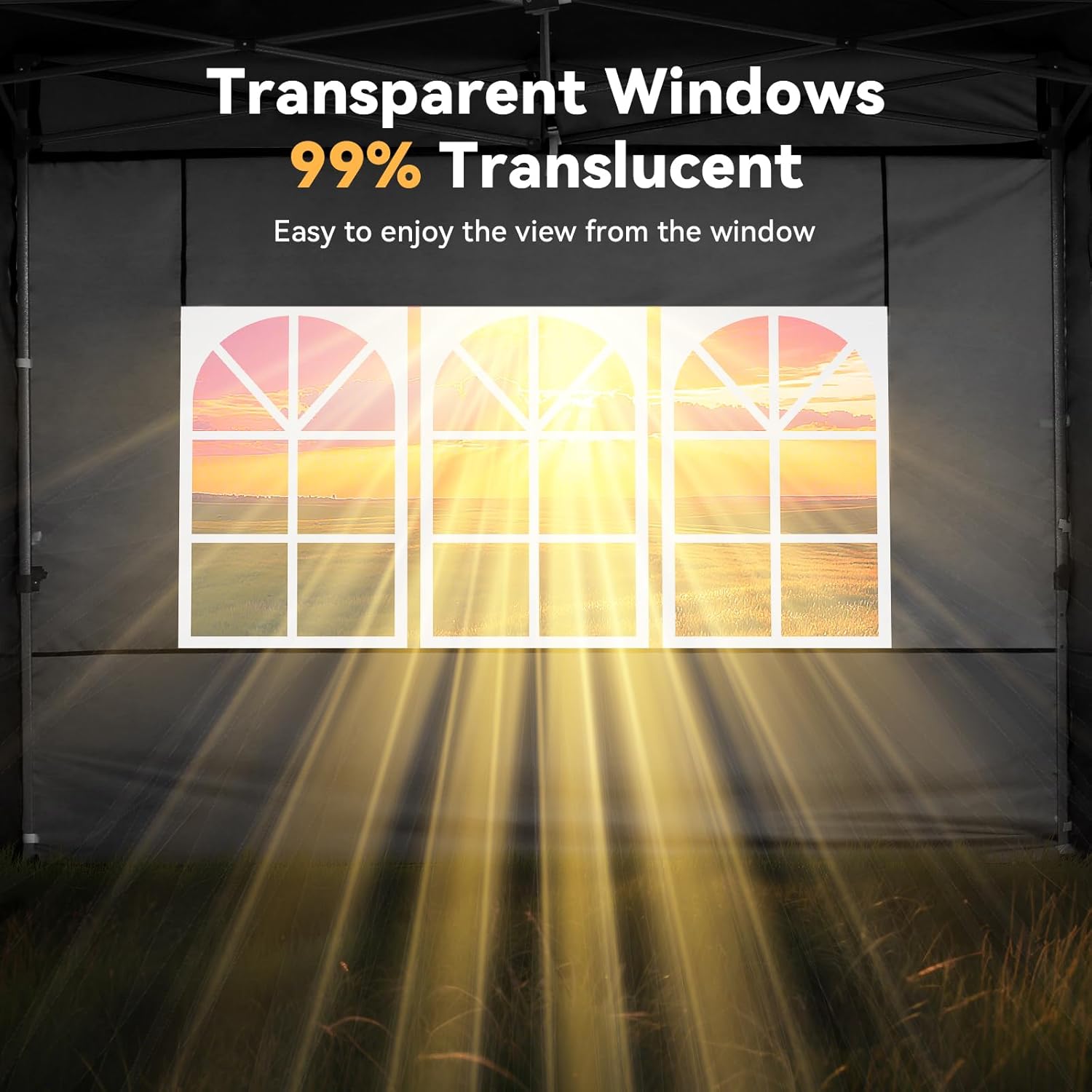 - ăBest Quality Fabric and Sidewallsă10x10 Heavy duty canopy tent is made of 500D Oxford cloth with two layers of PU coating, UPF 50+, blocks 99% of UV rays. Heat-sealed seam technology is used, 100% waterproof, 1500mm waterproof pressure, waterproof effect is better than other general tents. 4 PU coated sidewalls connected by a whole strip of hook and loop fastener and zipper to attach to the frame top and legs for securing, removable, you can install as many sidewalls as you want.