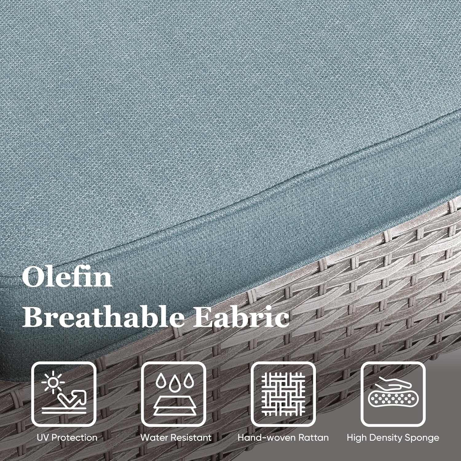 - ăComfortable 4'' Thick CushionsăThis garden furniture set features deep and wide seats with 4-inch thick sponge-padded cushions.Offers good resilience, not easy to deform or slide, also protect your lumbar and offer a comfortable sitting experience.Water-repellent polyester cover with zipper,Easy to clean and keep.