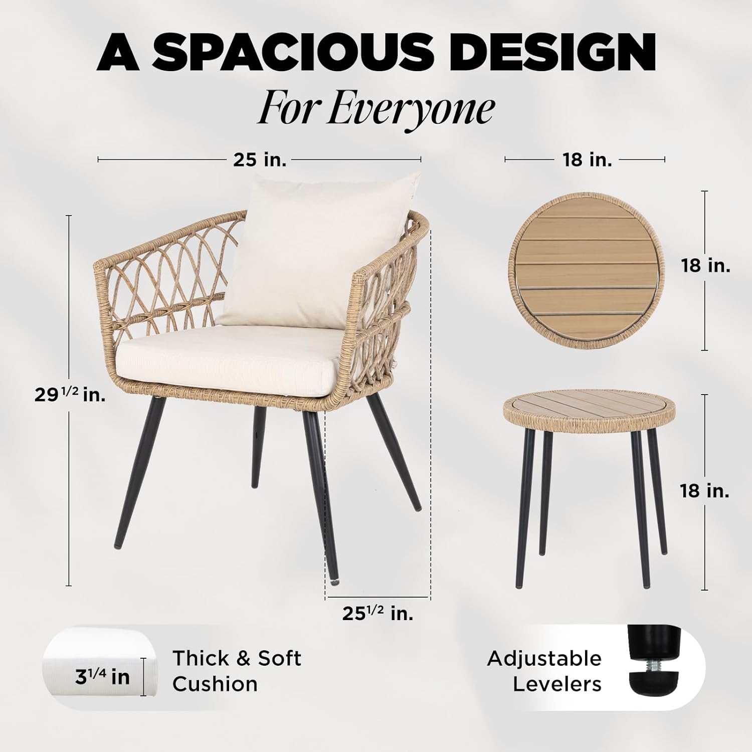 - 『UPGRADED UV-RESISTANT WICKER OUTDOOR BISTRO SET』Unmatched outdoor performance with upgraded UV-resistant PE Wicker, designed to withstand sun exposure without fading; Our bistro set 3 piece outdoor ensures lasting beauty and strength in any weather