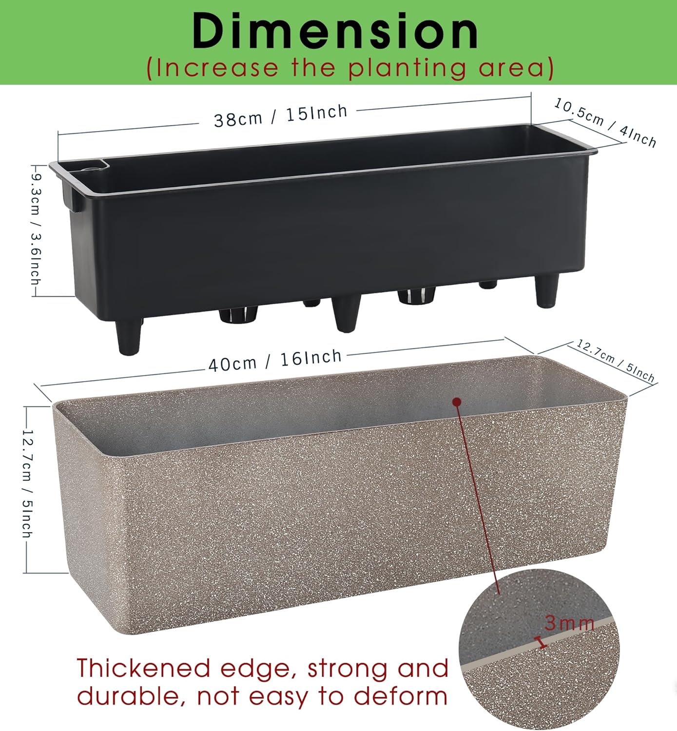 GardenBasix Elongated Self Watering Planter Pots 2-Pack Window Box 5.5 x 16 inch Indoor Home Garden Modern Decorative Pot for All House Plants Flowers Herbs (Coffee,2)