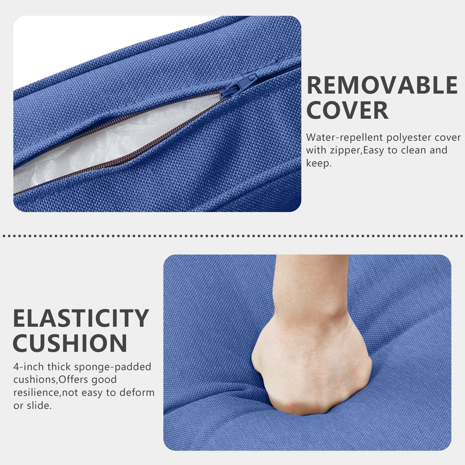 - 【Comfortable 4'' Thick Cushions】This garden furniture set features deep and wide seats with 4-inch thick sponge-padded cushions.Offers good resilience, not easy to deform or slide, also protect your lumbar and offer a comfortable sitting experience,Water-repellent polyester cover with zipper,Easy to clean and keep.