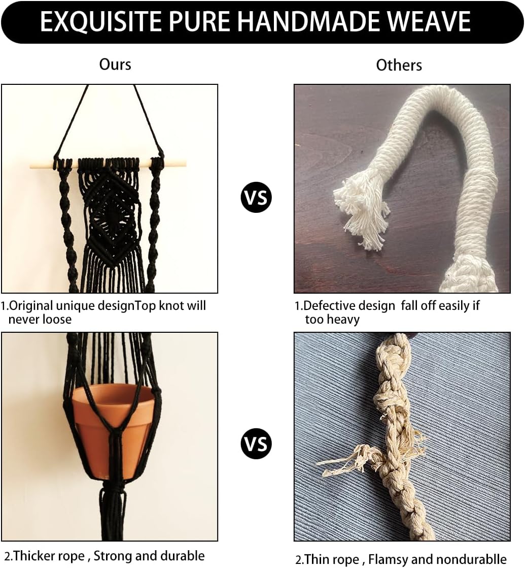 - HANDMADE WEAVING CRAFT - Hanging plant holders made from eco-friendly recycled cotton rope and wooded ring, It has a strong flexible woven design, sturdy and durable, accommodates planters of all shapes and sizes, you can take them home for your plants with confidence