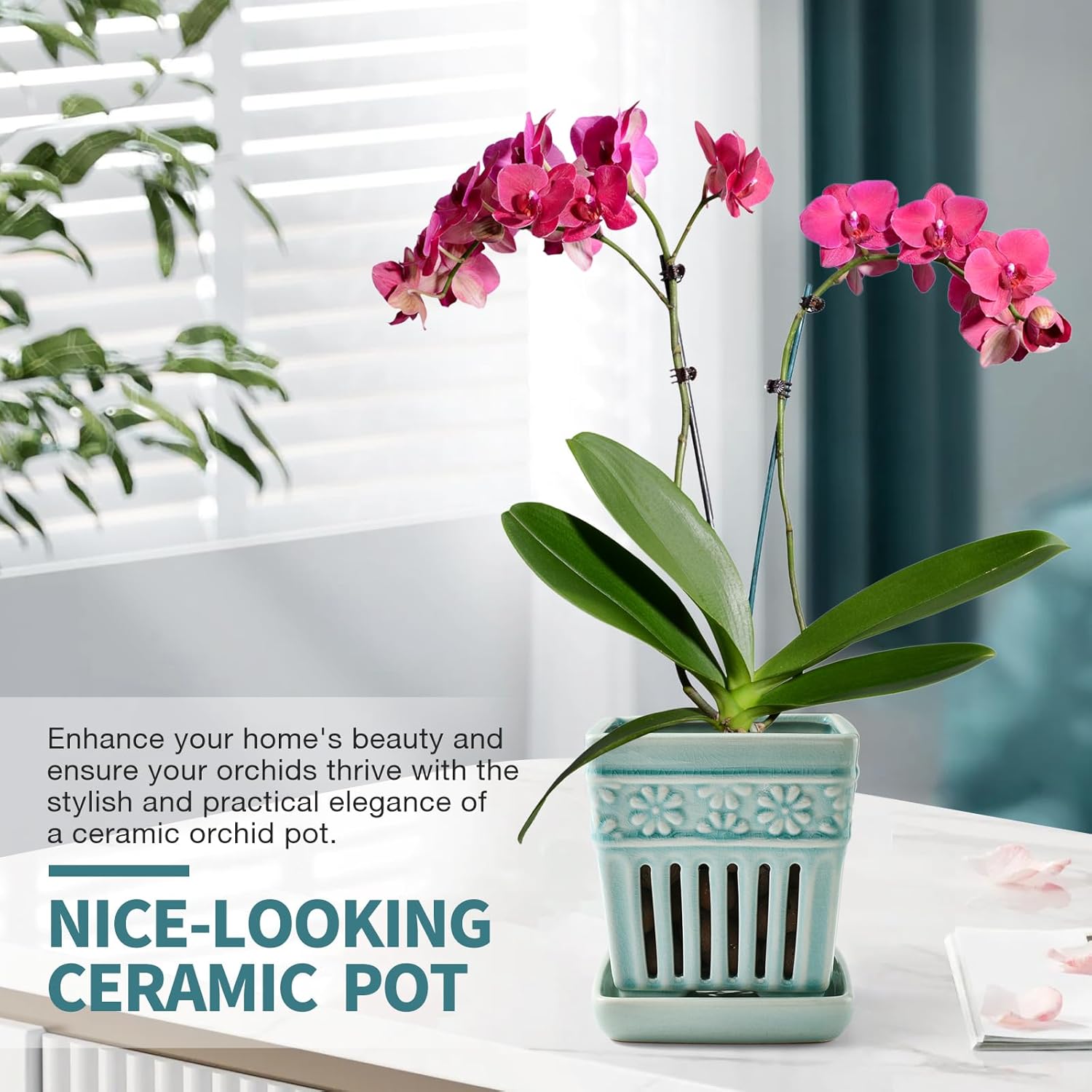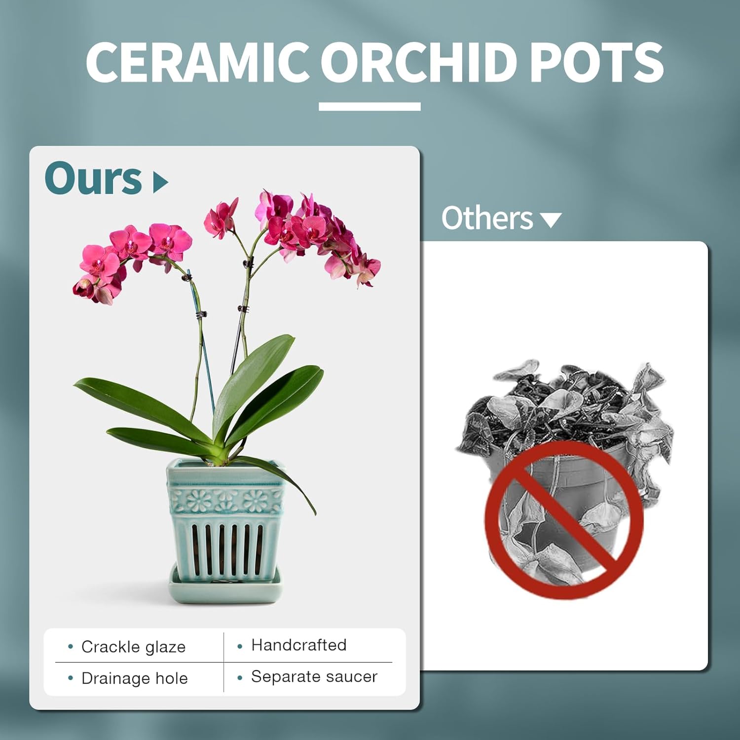 - 【Handcrafted Orchid Pot】Durable and handcrafted porcelain pot, measuring L: 5.1" x W: 5.1" x H: 5.5".