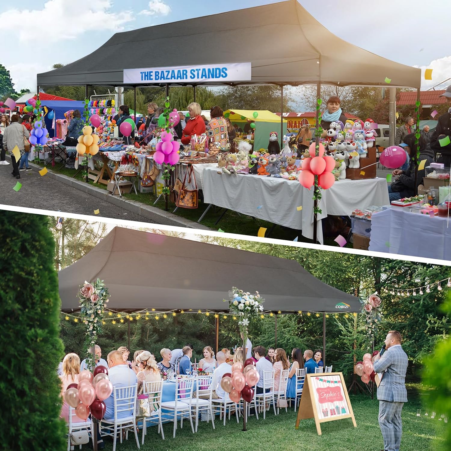 COBIZI 10x30 Pop Up Canopy Tent Heavy Duty with 8 Removable Sidewalls, Commercial Portable Tents for Parties Ez Up Canopy All-Weather Windproof & Waterproof and UPF 80+ Wedding Tent Sun Shelter